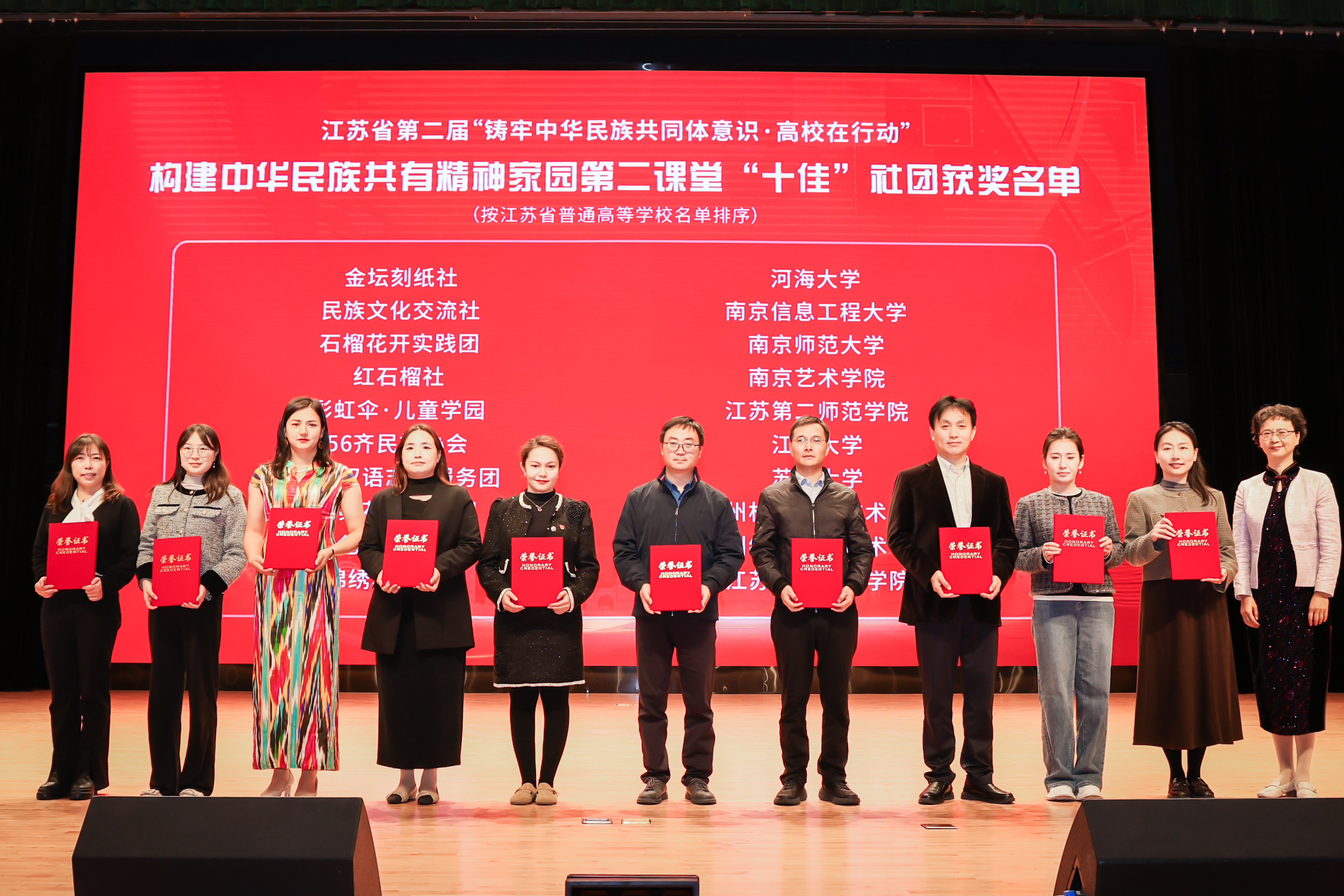 为加强高校铸牢中华民族共同体意识教育,由省民族宗教事务委员会、省委宣传部、省委统一战线工作部、省教育厅共同主办,我校承办的江苏省第二届“铸牢中华民族共同体意识·高校在行动”系列活动于今年4月底正式启动。活动期间,全省164所高校的165万余名师生参与其中。各高校紧密围绕“铸牢中国心 凝聚奋进力”的活动主题,以美润心举办“品鉴高雅艺术,弘扬民族文化”民族艺术展演,以赛促学参与铸牢中华民族共同体意识知识竞赛,以文化人传承中华民族优秀传统技艺,以行践知构建中华民族共有精神家园第二课堂,以理启智开展铸牢中华民族共同体意识学术沙龙和宣讲团进高校活动,充分展示了各民族师生像石榴籽一样紧紧抱在一起,共同建设伟大祖国、共同创造美好生活的精神风貌。