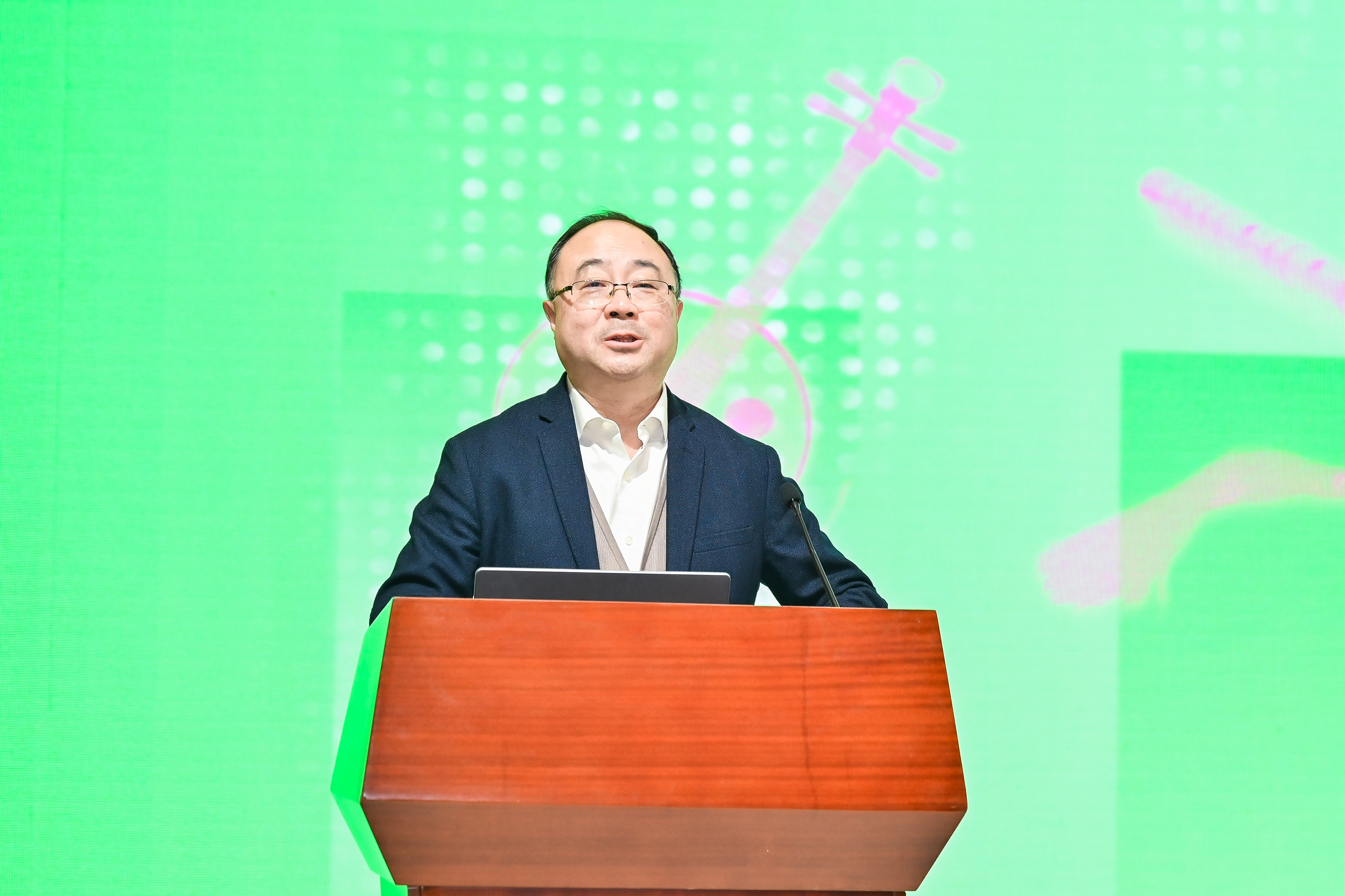 在调研江南丝竹传承基地环节,吴磊以《丝竹雅韵悠悠绵长,守正创新向美而行》为题作报告,通过主题展厅展示江南丝竹工作坊和现场教学,带领大家体验了智能美育和神经美学实验室的研究成果。他从基地概况与时代使命、资源整合与条件保障、人才培养与队伍建设、守正创新与数字赋能、科学研究与智库建设、国际交流与文化传播六个方面汇报了基地建设成效,体现了学校在全面实施学校美育浸润行动背景下对基地职责定位与创新实践的深刻思考。