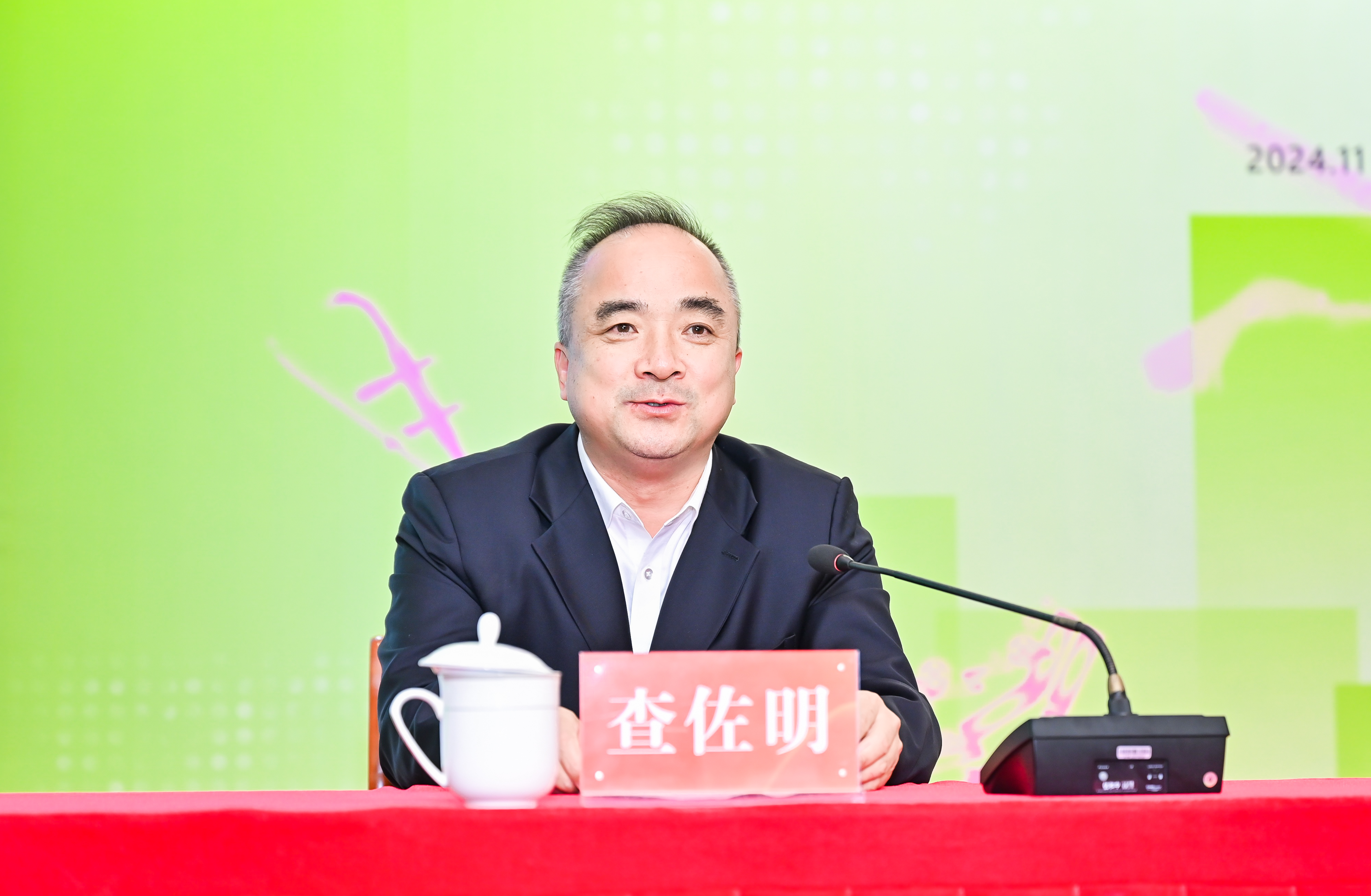 查佐明代表学校致欢迎辞。他表示,学校历来高度重视美育工作,将传承中华优秀传统文化融入高校美育。近年来,学校积极响应教育部《关于全面实施学校美育浸润行动的通知》,围绕以美育浸润学生、以美育浸润教师、以美育浸润学校三个任务,在课程建设、保障举措、优化评价机制等方面做出了有益、有效的实践探索,取得了丰硕的育人成果。希望学校借助中华优秀传统文化艺术传承基地专题研讨会这一宝贵的交流平台,与全国美育同仁齐心聚力,实现中华优秀传统文化的创造性转化与创新性发展,以美育浸润行动助推全国高校美育高质量发展。