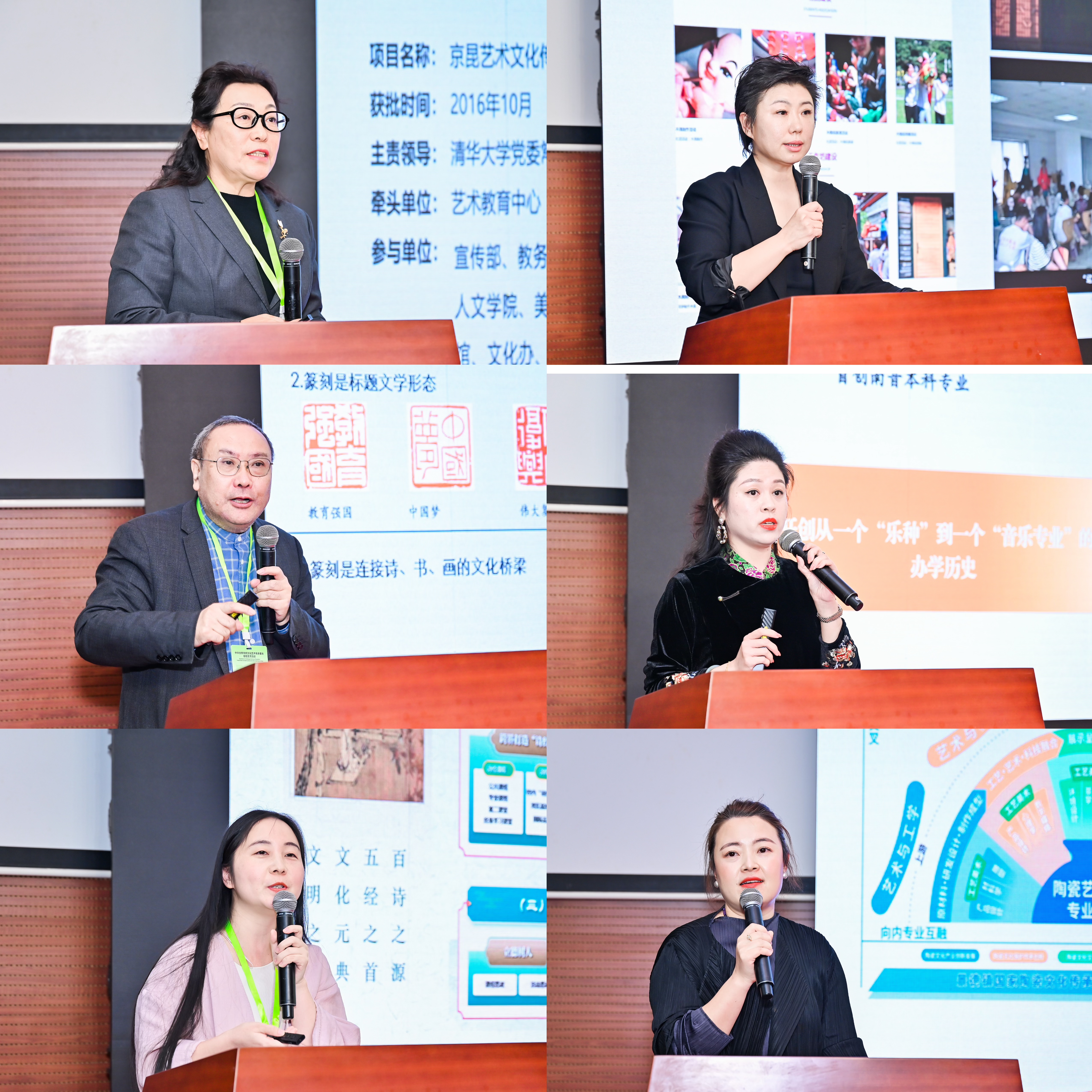 在交流发言环节,来自清华大学京昆艺术文化传承基地、东北大学木偶戏传承基地、华东师范大学篆刻传承基地、泉州师范学院南音传承基地、深圳信息职业技术学院诗经文化传承基地、景德镇学院陶瓷文化传承基地等六家基地的代表作了发言。特邀专家尹爱青教授分享了在传承基地建设的政策背景、传承基地的建设现状、传承基地建设等方面的思考。