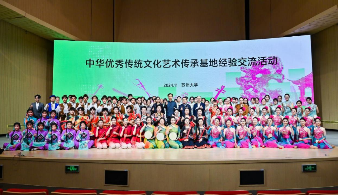 在传承基地文化展示及学生实践成果汇报环节,来自华南师范大学岭南舞蹈团、江苏第二师范学院紫金戏曲团、滁州学院花鼓艺术团、苏州大学东吴丝竹乐团的同学们带来了精彩的表演,为活动画下了圆满的句号。