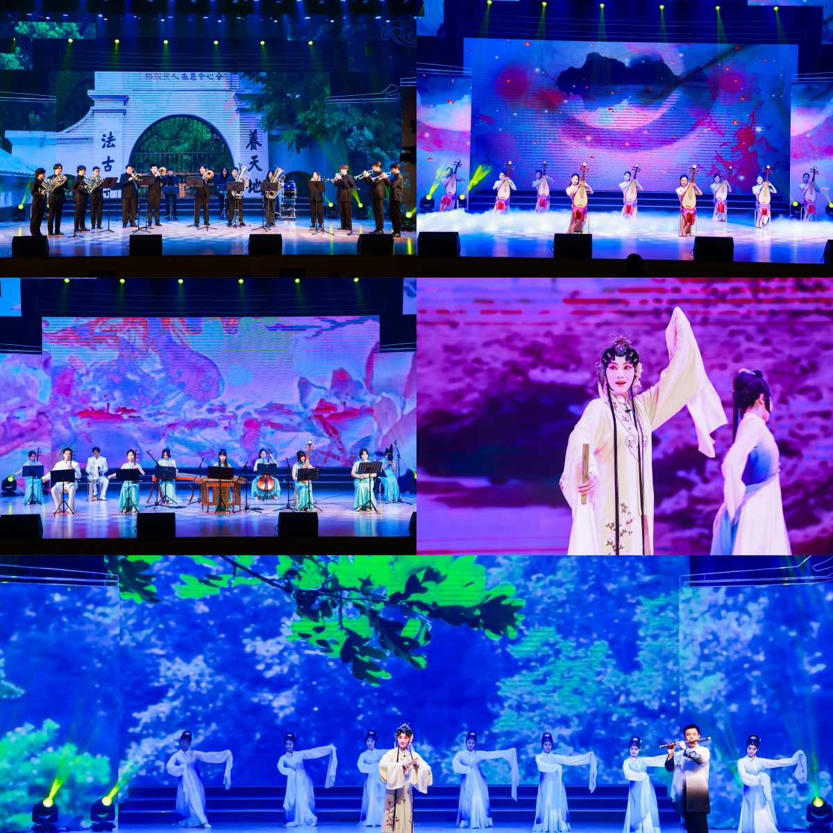 在“江南雅韵·人文东吴”篇章,《东吴校歌》见证了一代代苏大人在传承与创新中书写新时代的崭新篇章。苏州评歌《东吴情》在嘈嘈切切错杂弹的琵琶絮语中,用婉转弦歌诉说一段动人的东吴往事。“听丝竹之声,而天下治”,一曲江南丝竹《欢乐歌》以其轻快的旋律和富有感染力的节奏,生动地传达了欢聚的喜悦气氛。“不到园林,怎知春色如许”,由国家一级演员、艺术教育中心沈丰英教授带来的昆曲《牡丹亭·游园》中经典唱段“皂罗袍”尽显昆曲作为“百戏之祖”的独特魅力。