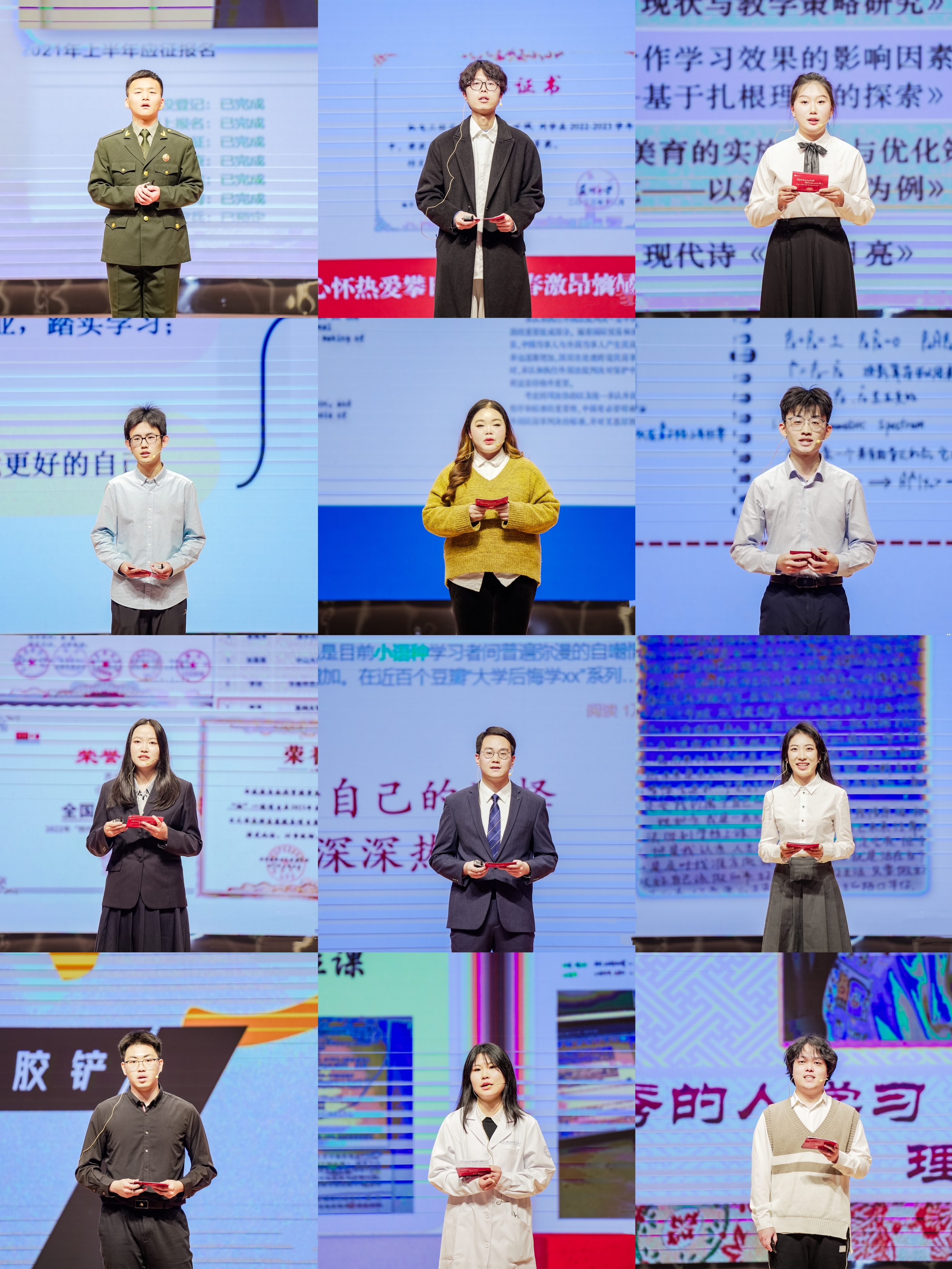 最美大学生邵前程,大学生年度人物唐心诚,学习科研标兵吴宇征、颜栋阳、李想、张玥,实践创新标兵朱子涵、杜易林、张泽堃、蒋宇轩,自强自立标兵左馨如,志愿服务标兵王一然登上宣讲舞台,用他们的青春故事诠释了“怀抱梦想又脚踏实地,敢想敢为又善作善成”,鼓励同学们立志高远,明德修身,知行合一,勇于担当,用实际行动向理想目标迈进,书写最美的精彩篇章。