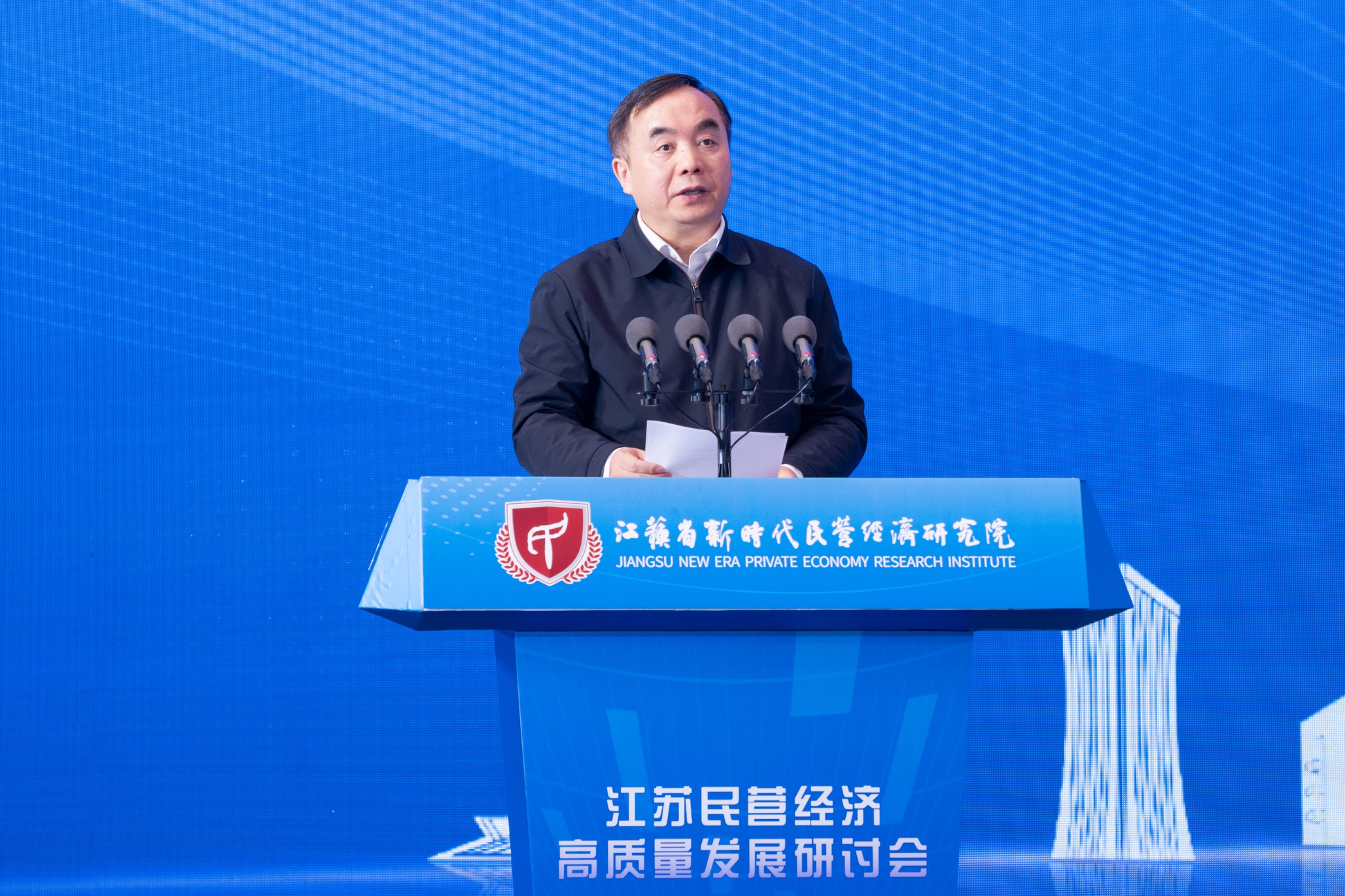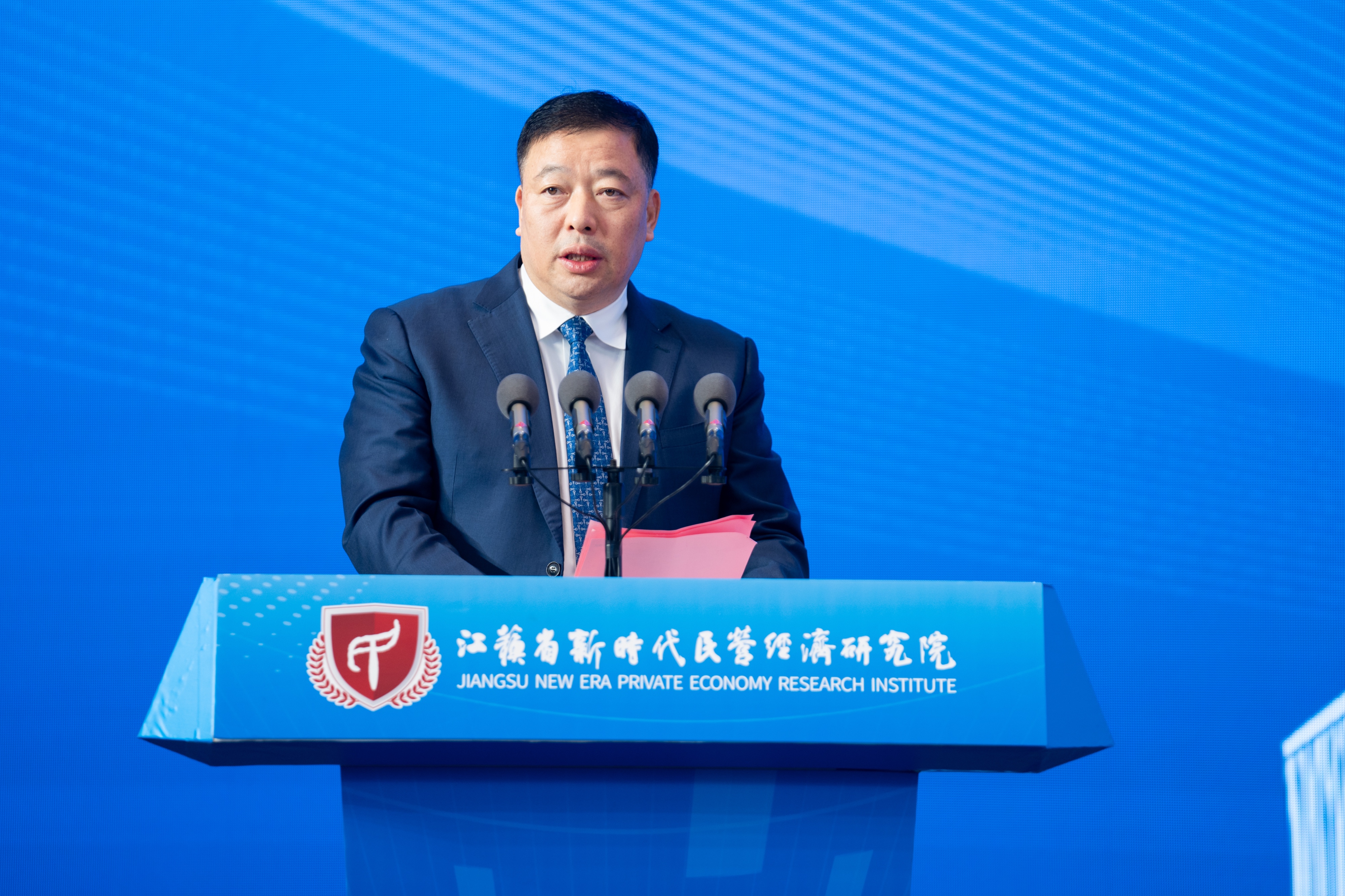 江苏省新时代民营经济研究院理事长、恒力集团有限公司董事长、总裁陈建华在致辞中表示,恒力集团有限公司作为苏州第一批民营企业,其发展离不开“敢为人先、实干兴邦”的苏商精神。他呼吁广大民营企业家要依靠新技术、开辟新赛道、激活新动能,围绕生态绿色发展、科技创新引领、数字化智能化转型三个方面重点发力,共同推动江苏经济实现高质量发展。
