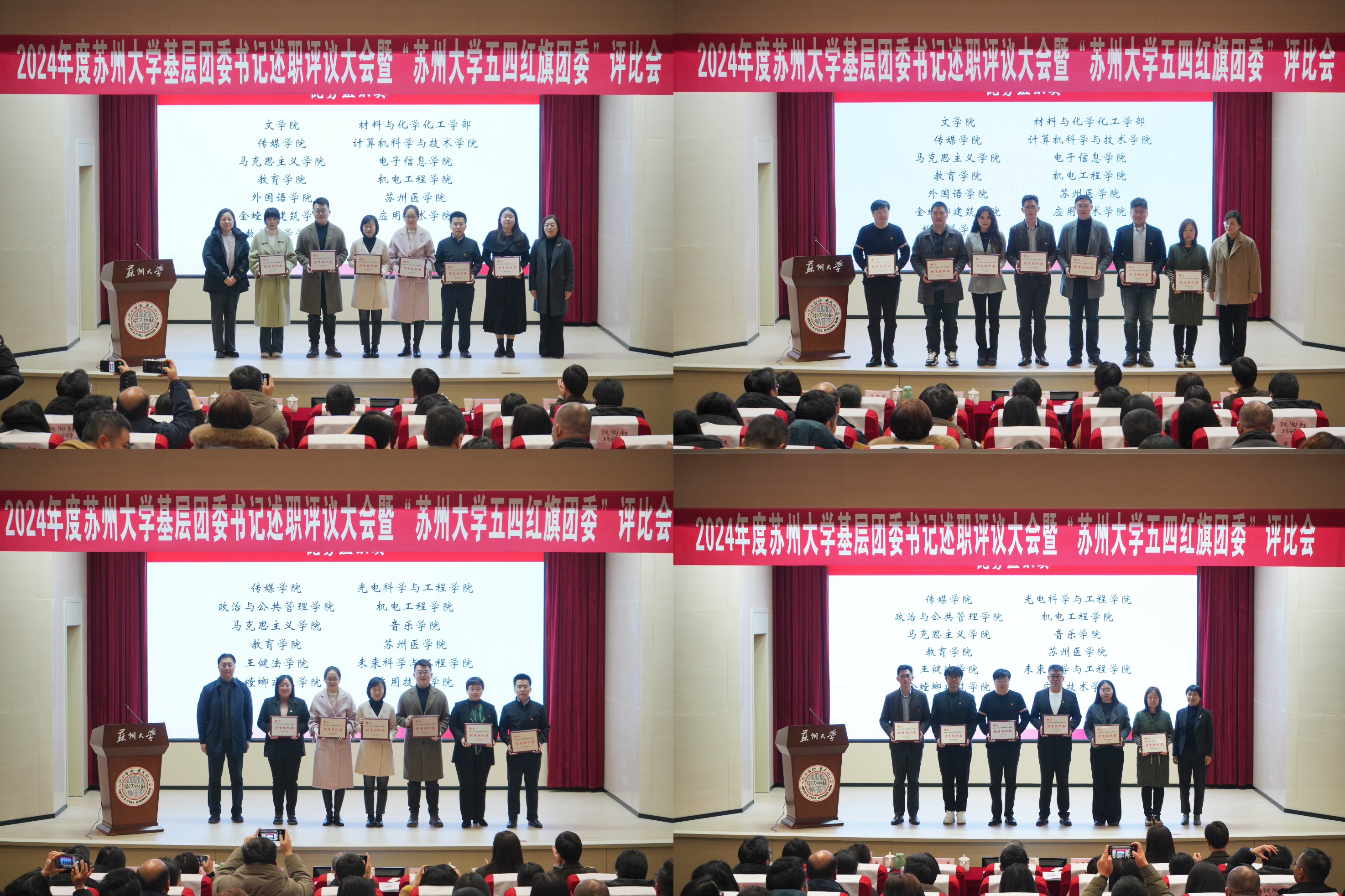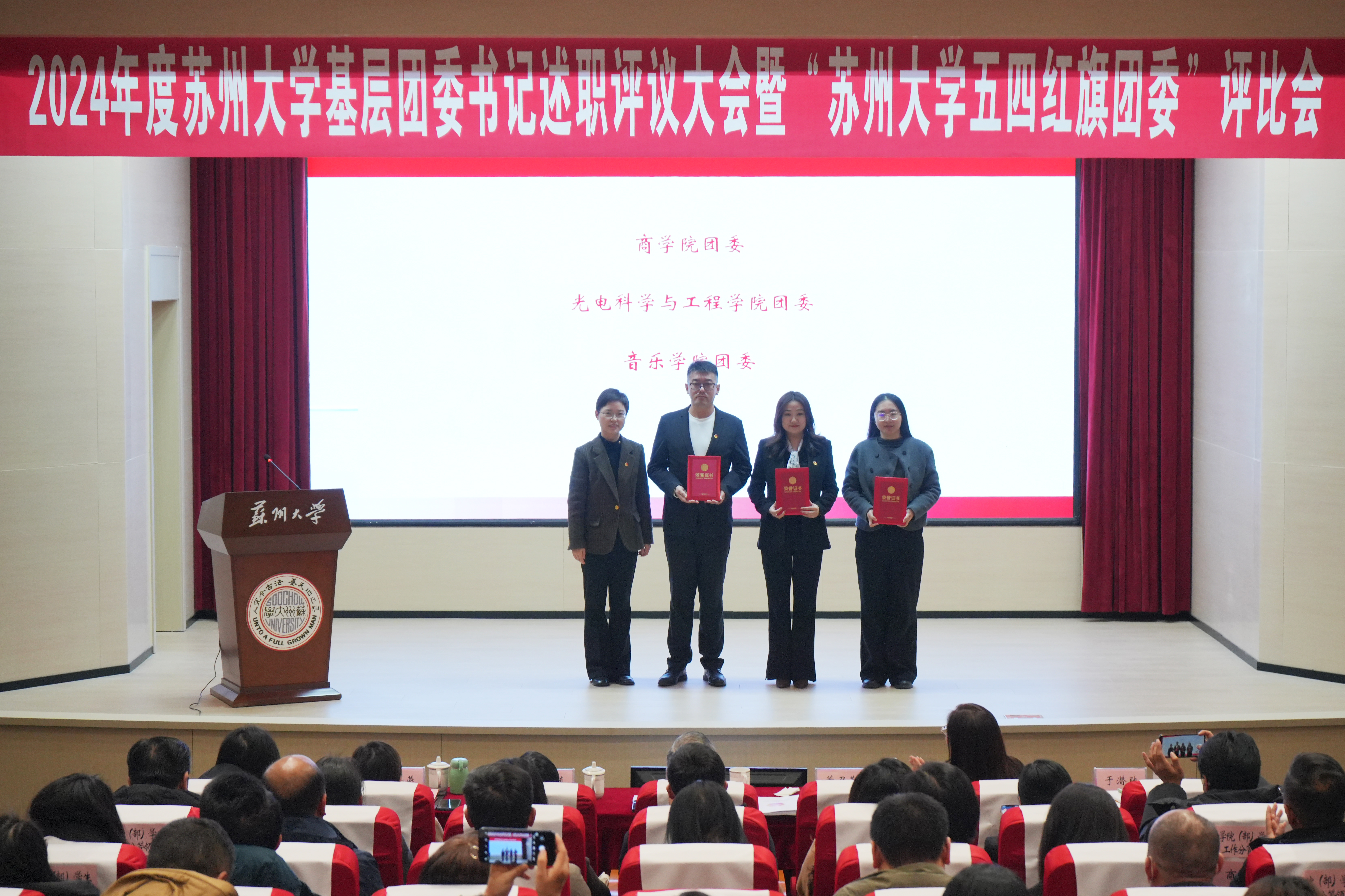 商学院团委、光电科学与工程学院团委、音乐学院团委在2024年度共青团工作专项考核中进步显著,获评“2024年度苏州大学共青团工作争先进位奖”。