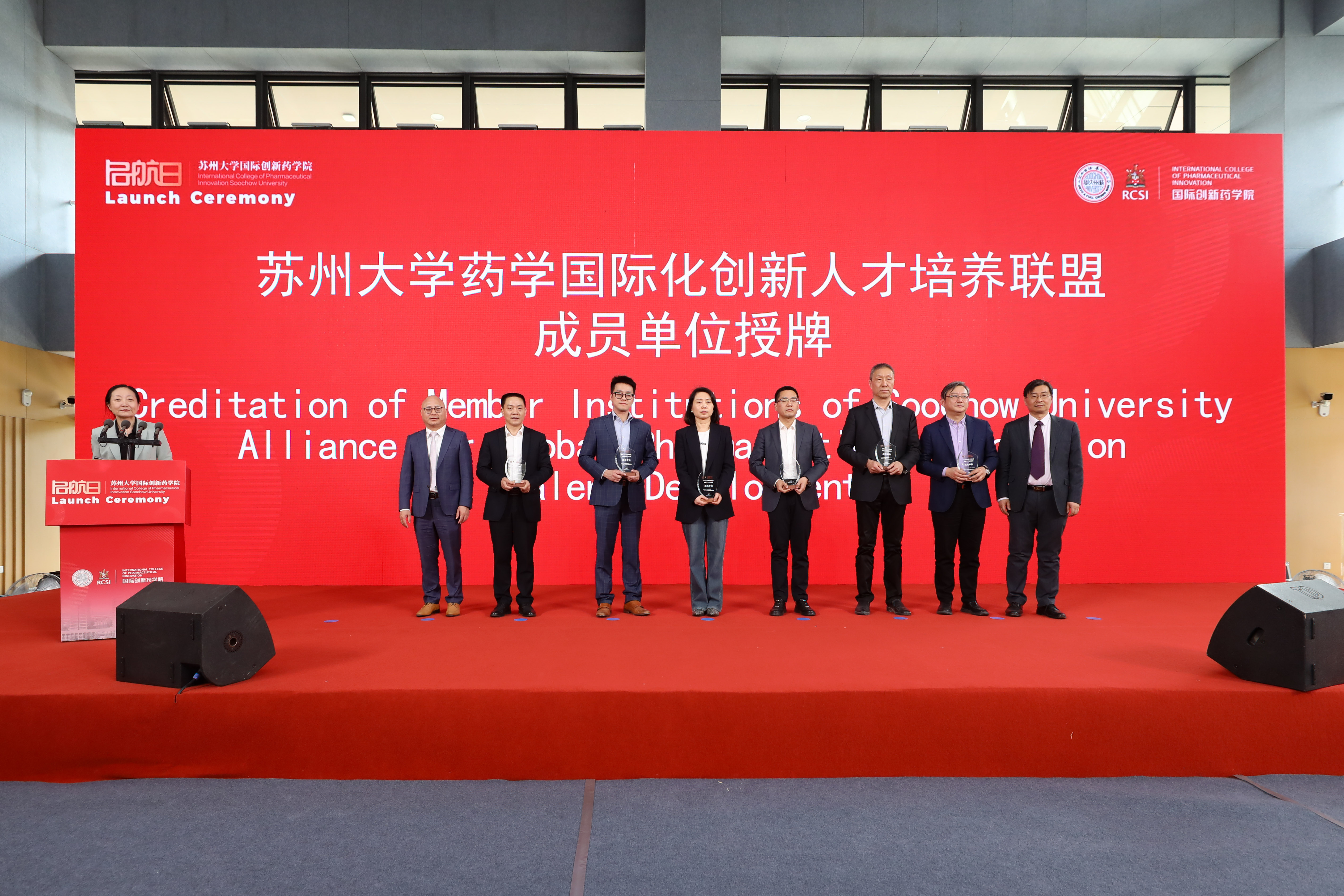 国际创新药学院作为国内首家专注药学的中外合作办学机构,在人才培养、学术科研及应用转化方面,得到了苏州多家创新型药企、医院、中学的大力支持。活动现场举行了“苏州大学药学国际化创新人才培养联盟”发布仪式,与会嘉宾为成员单位授牌。