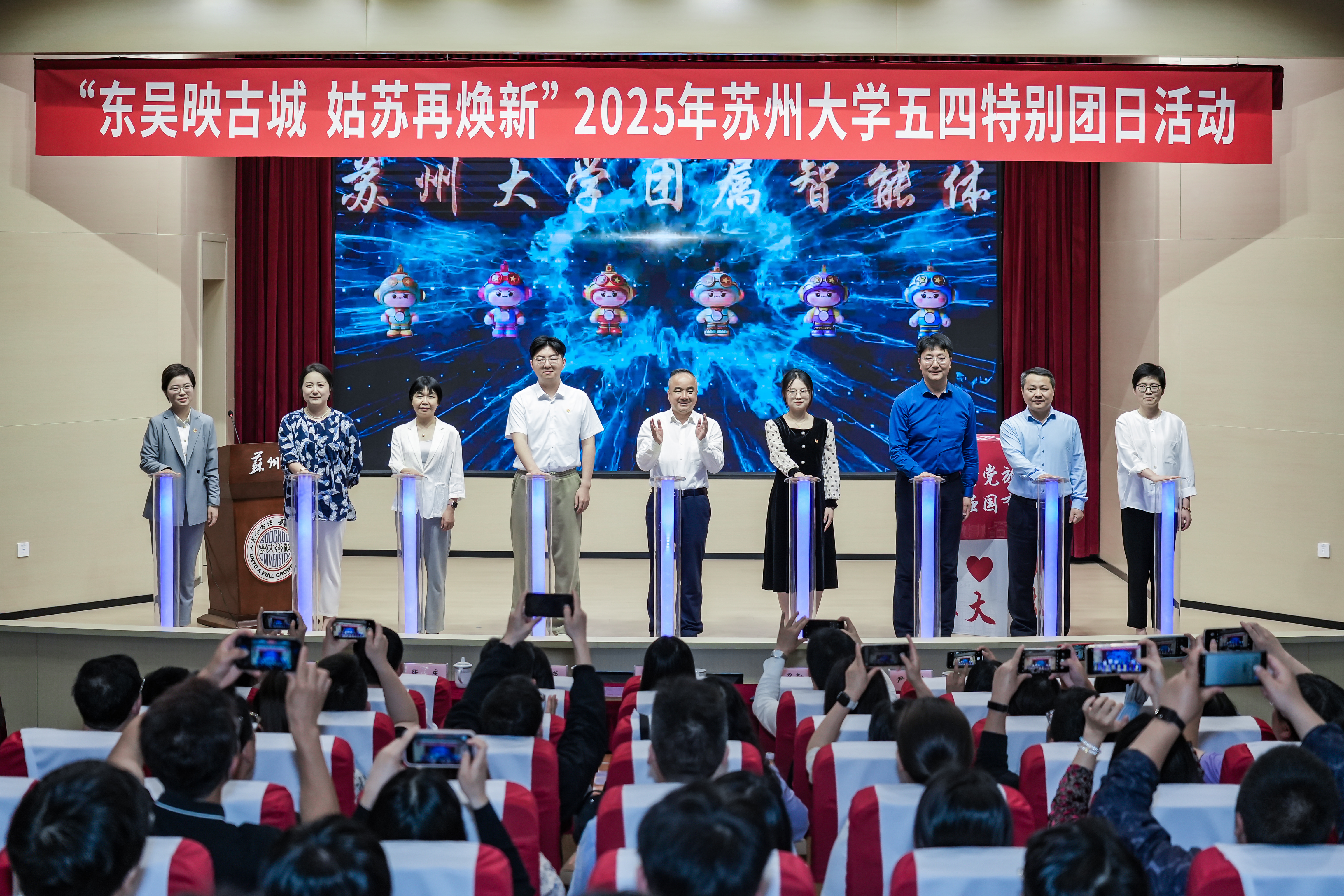 4月30日下午,我校在天赐庄校区红楼学术报告厅举办“东吴映古城 姑苏再焕新”2025年苏州大学五四特别团日活动。校党委常委、副校长查佐明,苏州市姑苏团区委书记卞玮佳出席活动,学校相关职能部门、相关学院负责人,商学院、纺织与服装工程学院的团员青年代表和全校团干部等参加活动。活动由校团委副书记徐娜主持。