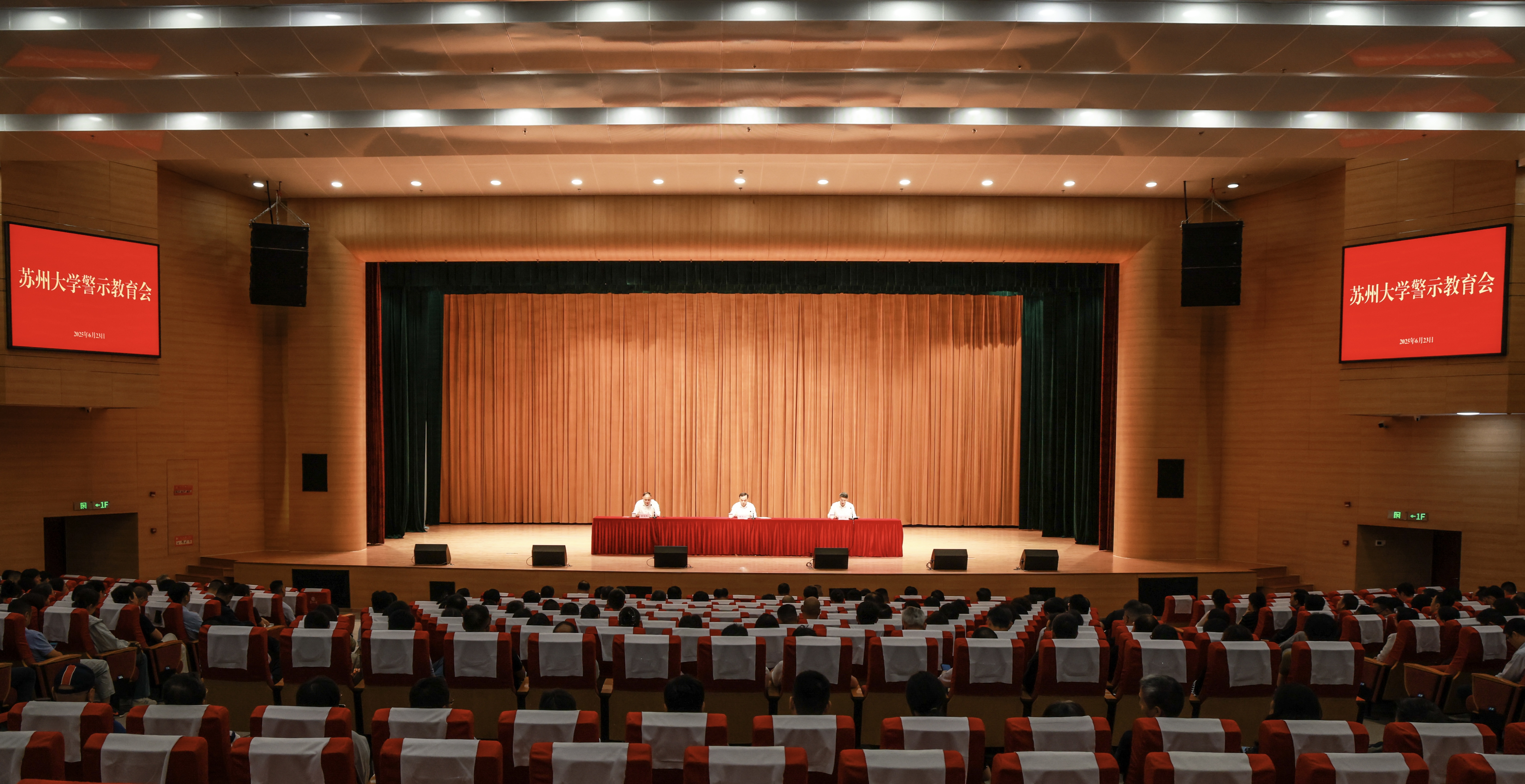 6月23日,苏州大学召开全校警示教育会,深入学习贯彻习近平总书记关于加强党的作风建设的重要论述和中央八项规定及其实施细则精神,全面落实中央部署要求和全省警示教育会议精神,教育引导全校党员干部进一步知敬畏、存戒惧、守底线,铸忠诚、勇担当、善作为。