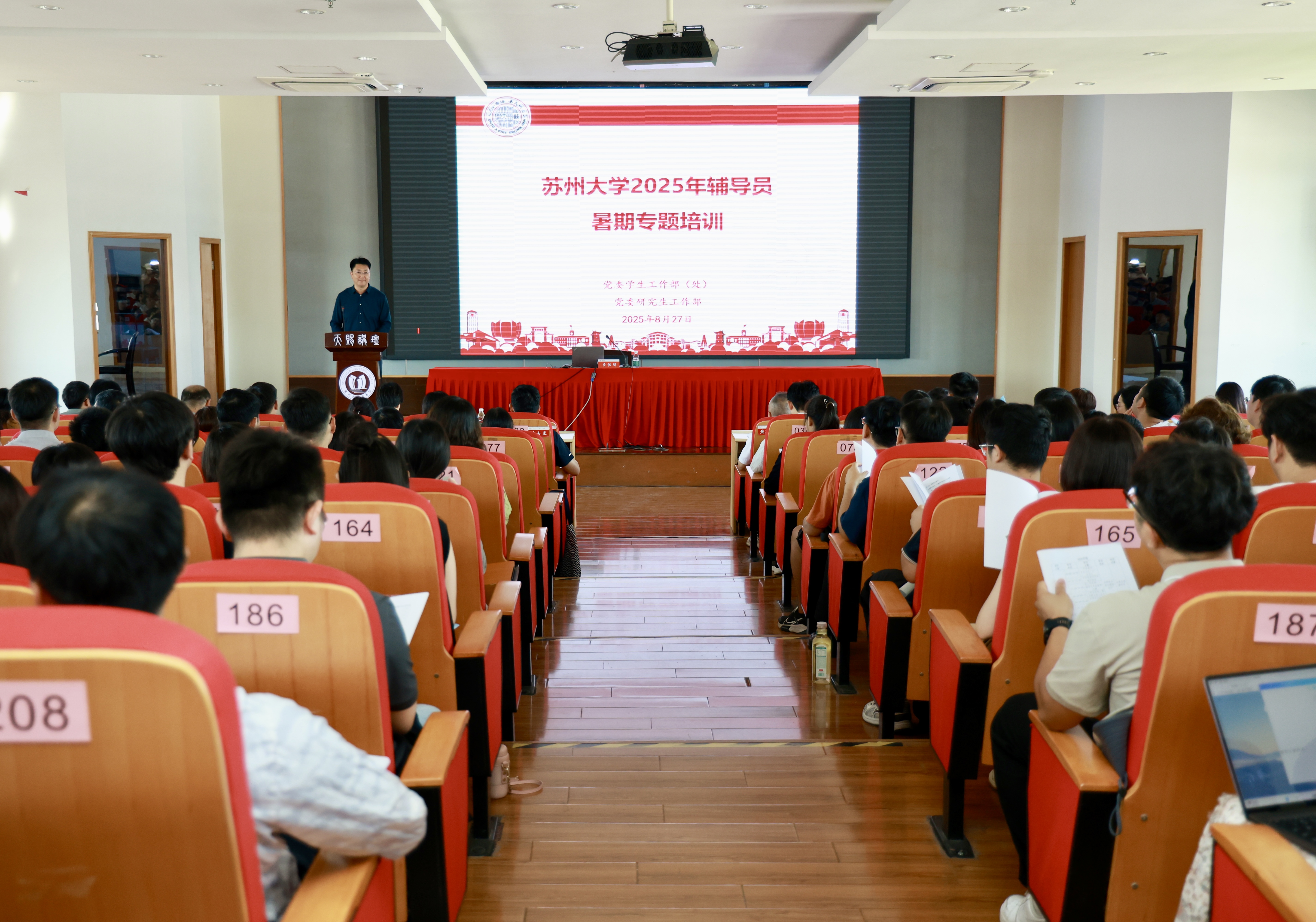 为进一步提升辅导员育人能力,8月27日至29日,苏州大学2025年辅导员暑期专题培训在天赐庄校区举行。校党委常委、副校长查佐明出席开班仪式,相关职能部门负责人参加活动,各学院(部)分管学生工作负责人、全体辅导员等200余人参加培训。活动由党委学生工作部(处)部(处)长董召勤主持。