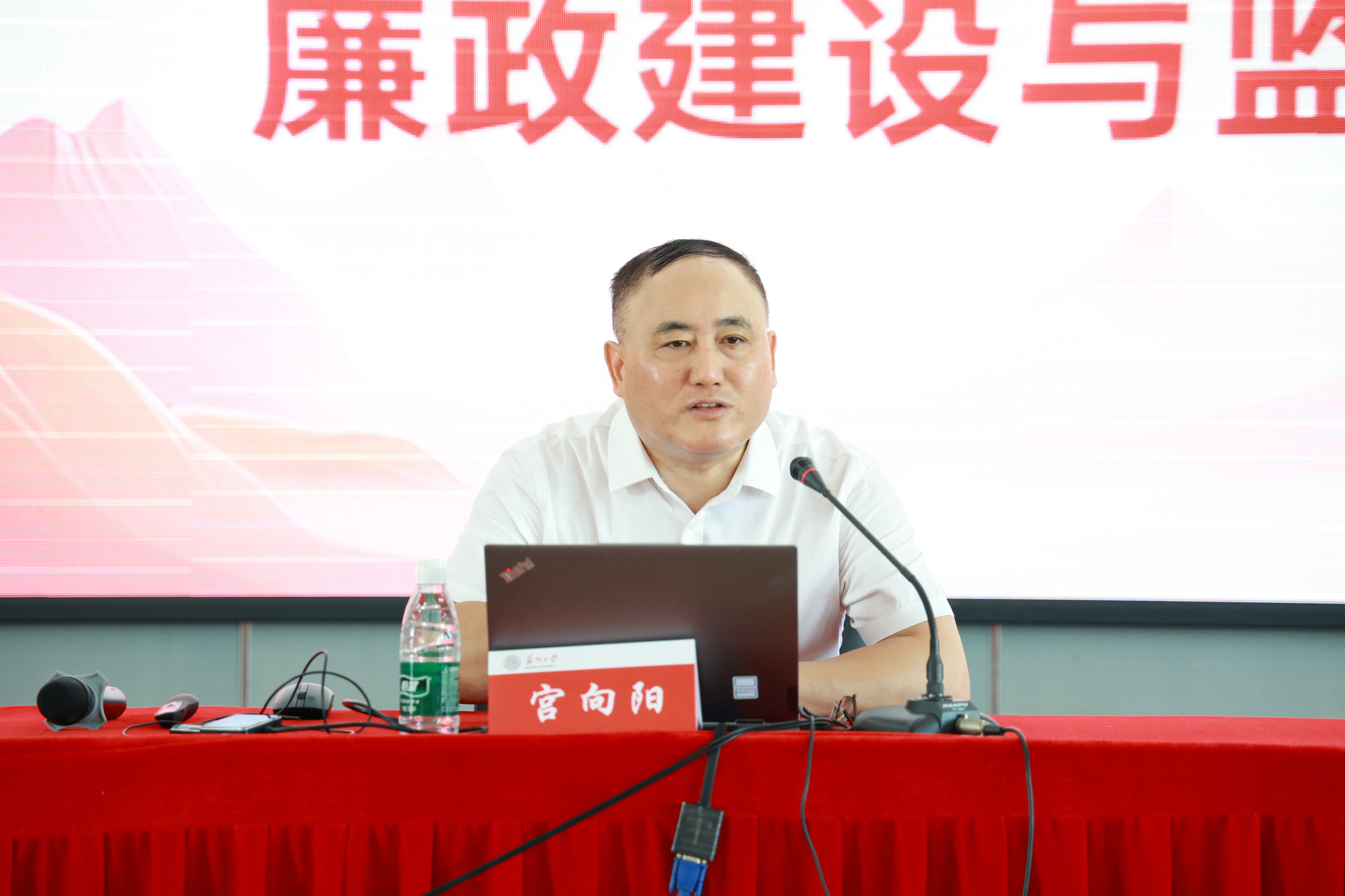 校党委常委、纪委书记、派驻监察专员宫向阳以《强化监督执纪,筑牢廉洁防线 高校全面从严治党的实践和探索》为题授课。他详细介绍了加强权力监督的重要意义与“两个答案”的深刻内涵,系统梳理了党的十八大以来党风廉政建设及全面从严治党工作的实践成效与理论成果,并通过实际案例,深度剖析了高校领域的典型问题,为筑牢思想防线、提升监督履职能力提供了有力指导。