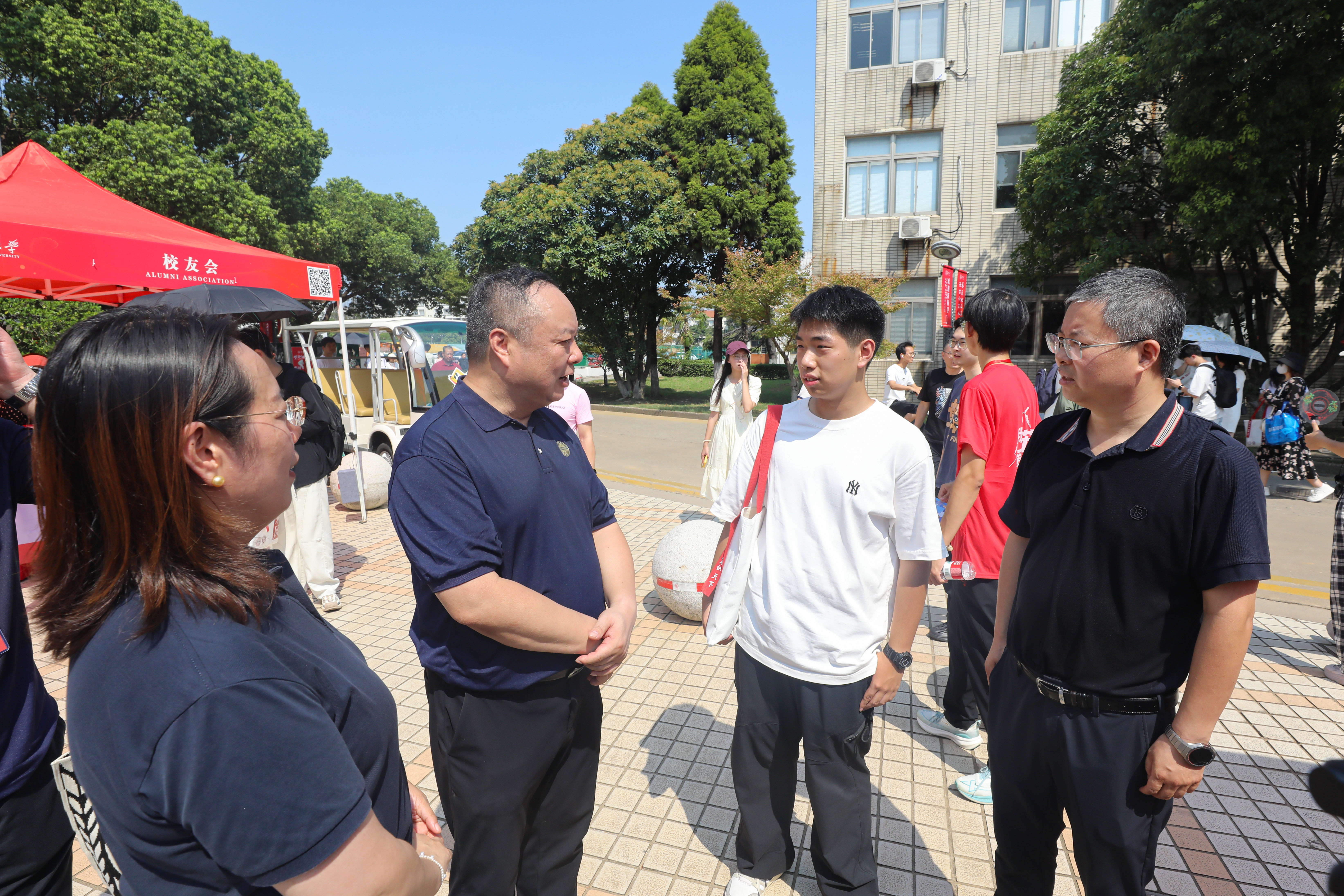 校领导沈明荣、姚建林、查佐明、王云杰来到迎新现场,详细了解新生报到情况及各项迎新保障工作,并鼓励新生积极主动融入校园生活,敢想敢做、勇于创新,努力绘就精彩的青春篇章。