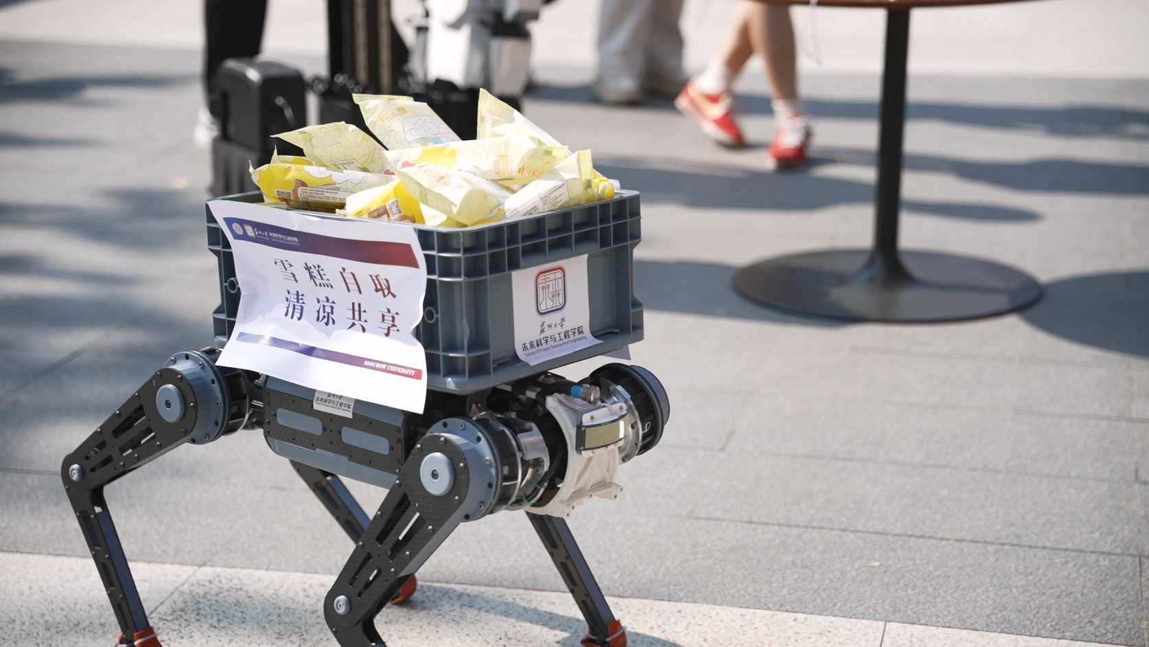 在未来校区,迎新横幅随着无人机缓缓升起,“欢迎2025级新同学”格外醒目。翩翩起舞的机器人热情欢迎新同学们的到来。由无人接驳车、无人行李托运车组成的迎新小队成为校园里一道靓丽的风景线,它们科技感满满、未来感十足,在繁忙的迎新季帮忙接驳带路、搬运行李。