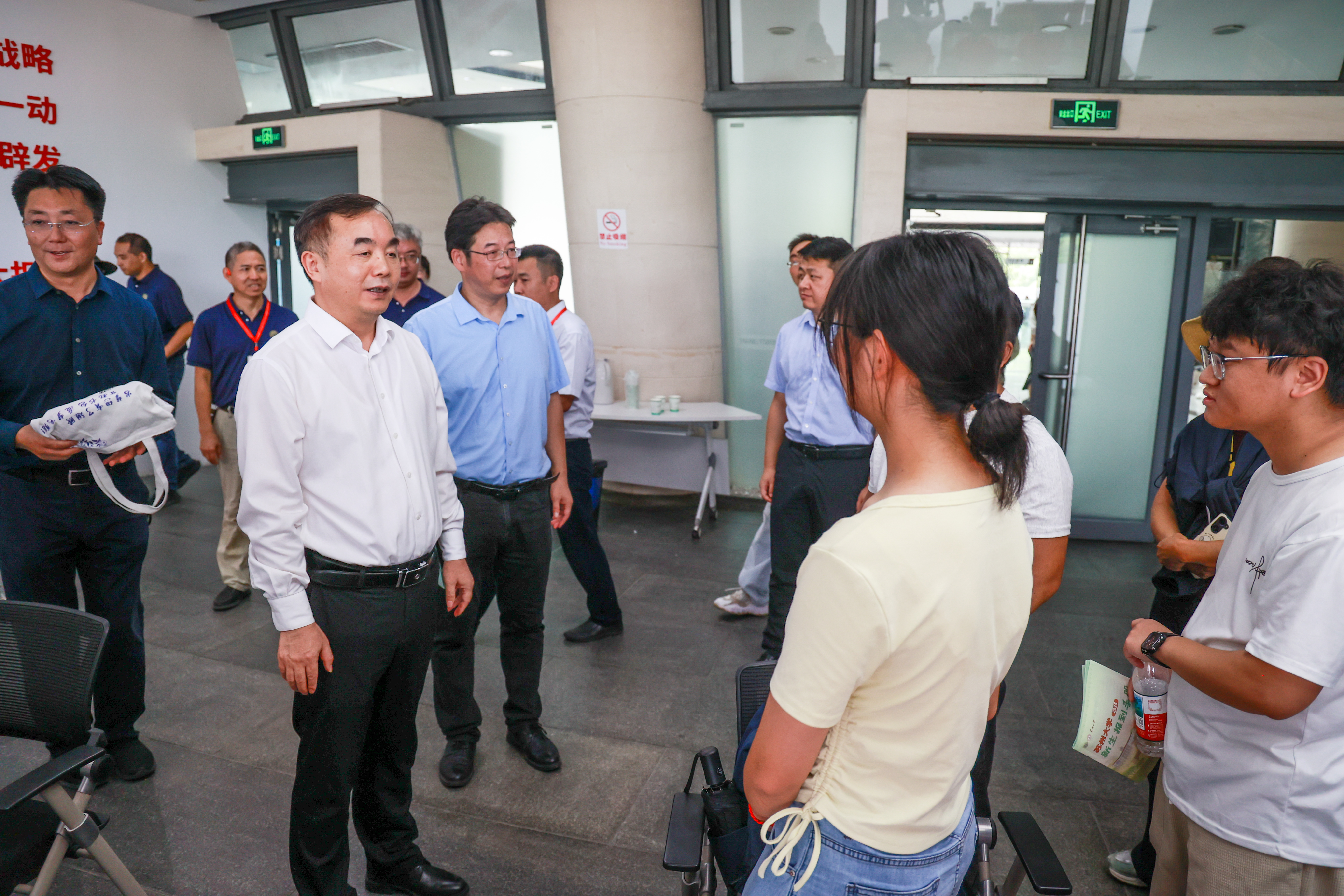 校党委书记张晓宏来到独墅湖校区迎新现场,实地查看并详细了解新生入学报到的工作流程、迎新工作保障情况及各学院(部)迎新举措,并亲切慰问在酷暑中辛勤工作的师生志愿者。“同学家是哪儿的?报到过程还顺利吗?如果有任何需要或是碰到困难,随时跟老师沟通,我们会第一时间为大家提供支持保障。”在走访学校绿色通道、云中苏大运营中心时,张晓宏与新生及家长亲切交谈,鼓励新同学们要尽快适应新环境、新身份,全面提升自我,在大学生活中成长为有理想、敢担当、能干事的新时代青年。