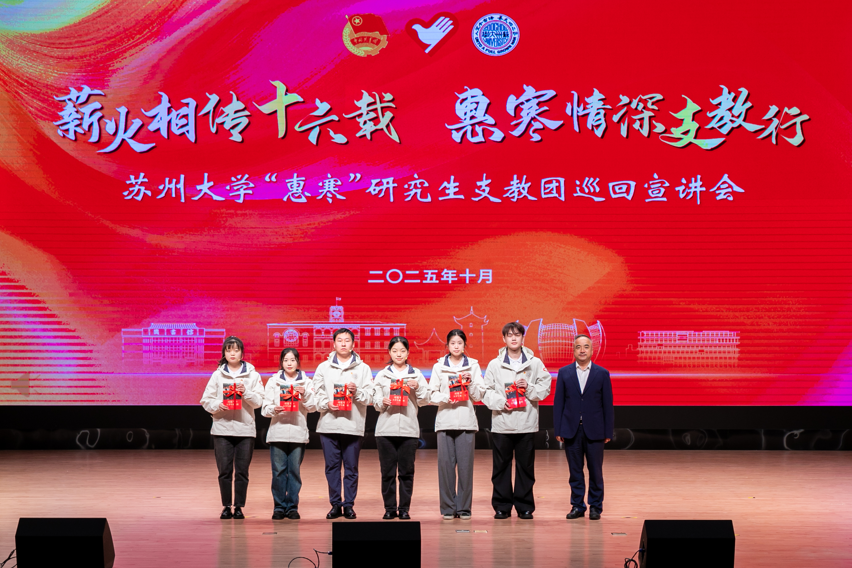 近期,“薪火相传十六载,惠寒情深支教行”——苏州大学“惠寒”研究生支教团巡回宣讲会将在四大校区举办,让更多同学了解“惠寒”研支团的奋斗故事,传承苏大“惠寒”精神,立志到祖国和人民最需要的地方建功立业。