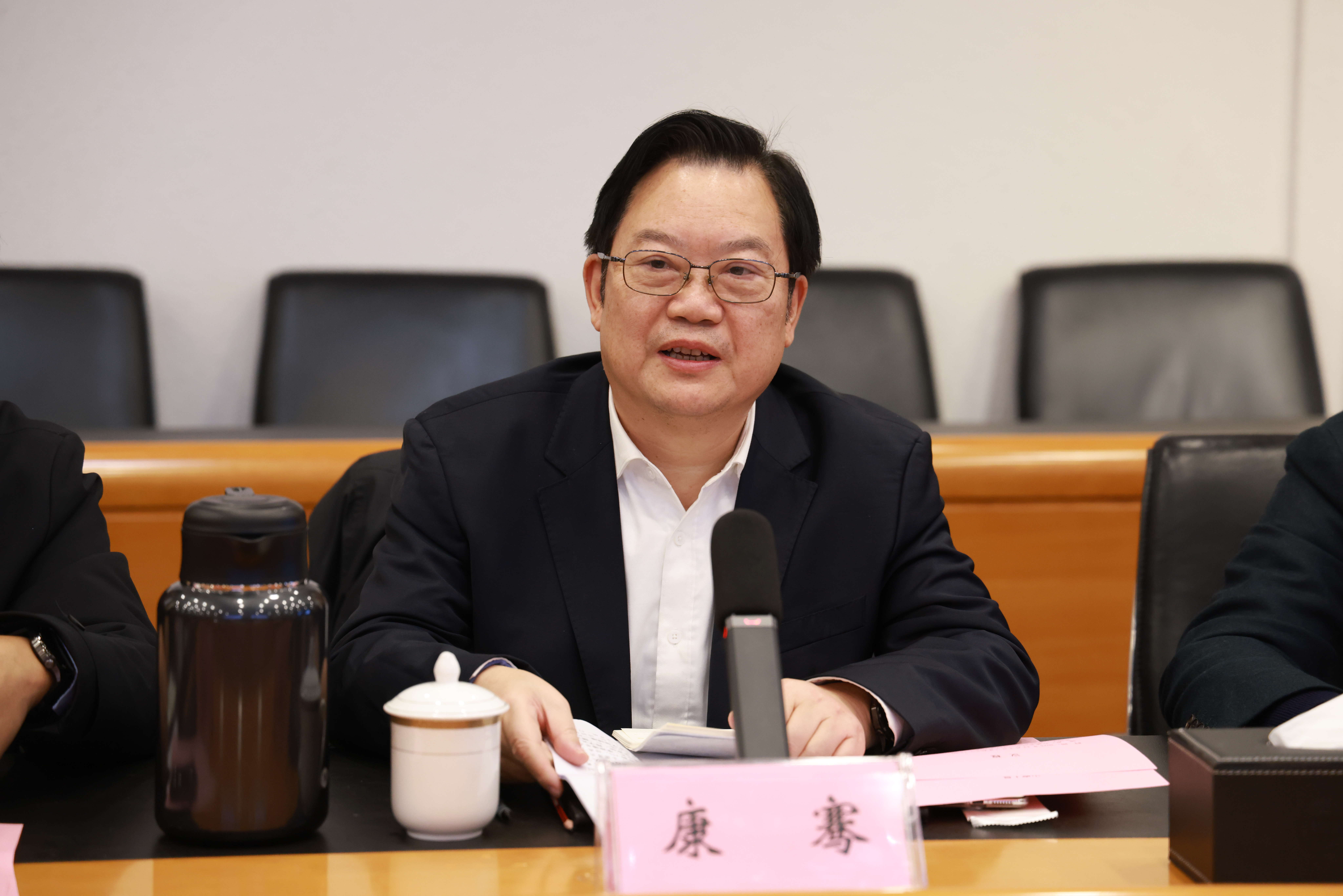 康骞对我校在学科建设、产学研协同创新等方面取得的建设成果给予高度评价。他指出,重庆理工大学积极构建“以工为主、以理为基、以文赋能”的学科专业布局,坚持“走进企业、走出国门、走向未来”的开放办学路径,不断推动教育教学改革与产业需求紧密对接。两校在办学理念、发展路径上有诸多共通之处,合作基础坚实,期待以此次交流为契机,进一步推动双方互学互鉴、优势互补,携手为高等教育高质量发展贡献力量。