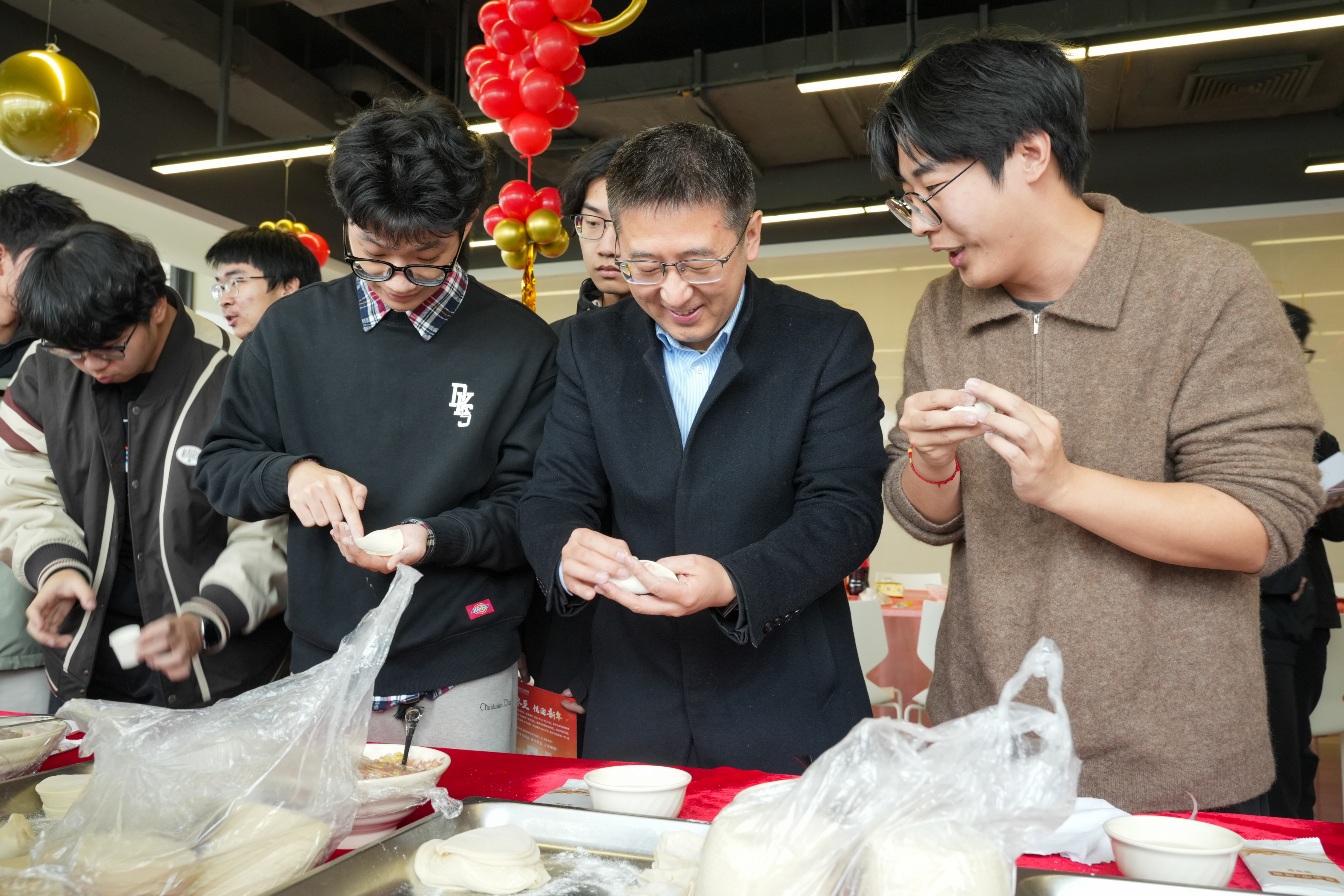 包饺子在中国传统文化中饱含团圆美满的寓意。师生围聚在桌前,默契配合,将一份份冬日温情包进了饺子里。校领导与同学们边包饺子边话家常,向大家讲述苏州冬至的习俗和特色节令美食,并寄语大家在专注学业的同时,也要多体悟传统文化,在文化传承中坚定青春志向。热气腾腾的饺子陆续出锅,香气弥漫、笑语满堂,温暖祥和的节日氛围洋溢在整个校园。