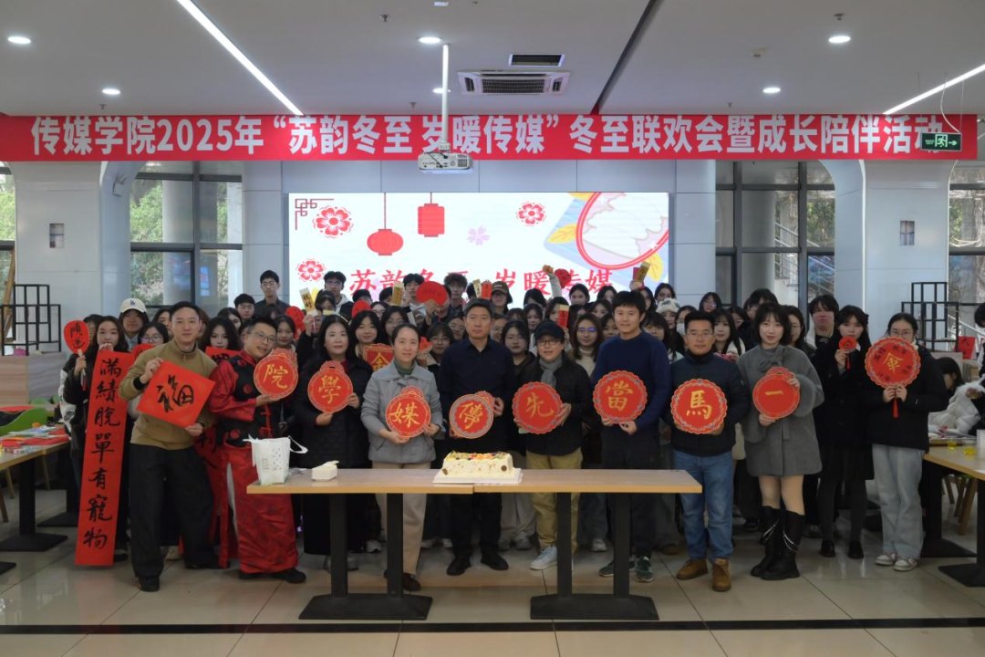 传媒学院举办冬至联欢会暨成长陪伴活动,用游戏唤醒古韵,用美食驱散寒意,用笔墨封存祝愿。师生齐聚,共同感受千年传承的温度。