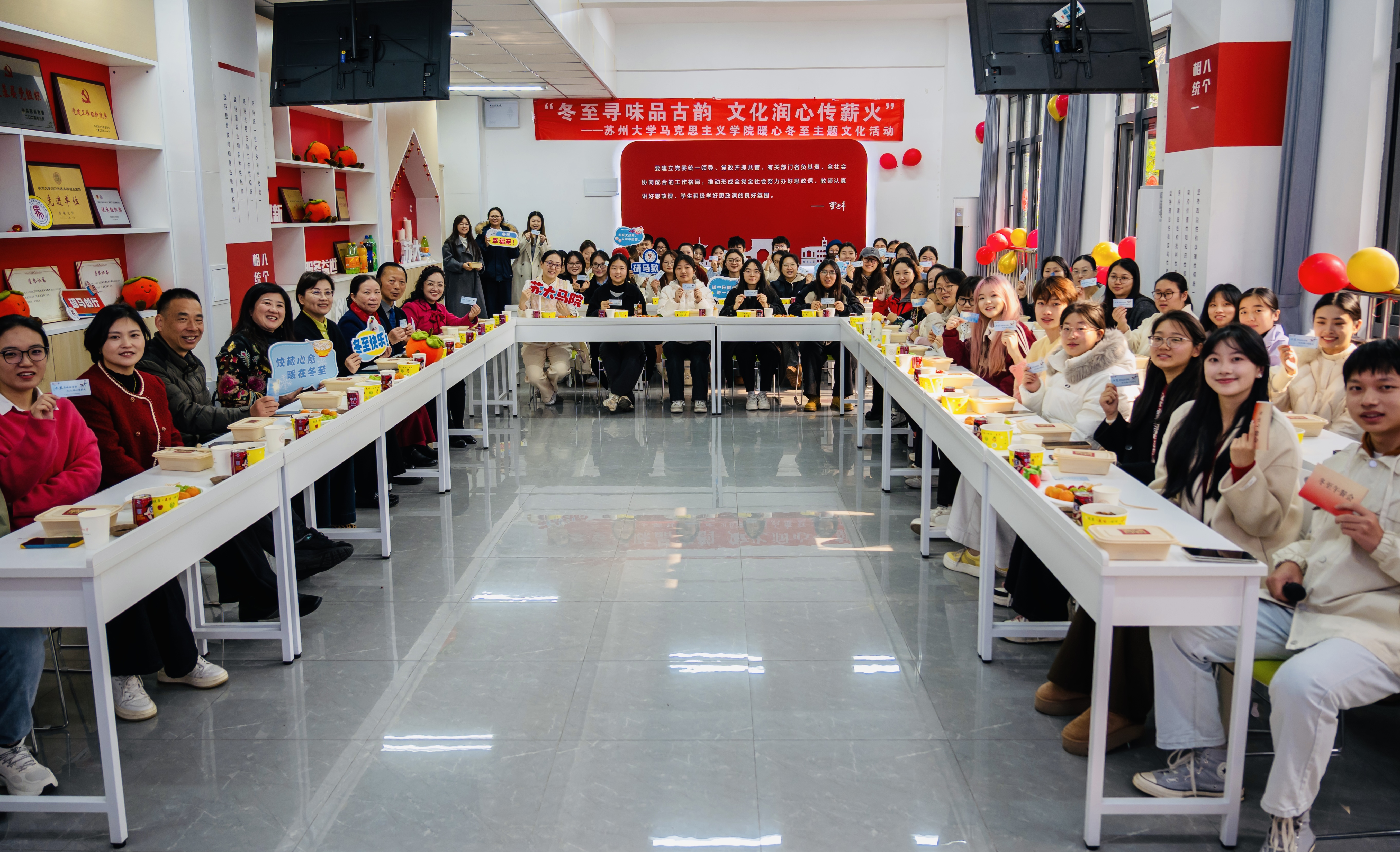 岁寒冬至,食暖情长。为进一步继承和弘扬中华优秀传统文化,涵养文化自信,让同学们沉浸式体验冬至意蕴,12月20日,苏州大学“冬至有约、情满东吴”系列活动温暖开启。师生欢聚一堂,共享时令美食,感受民俗魅力,在融融暖意中传递团圆祝福。