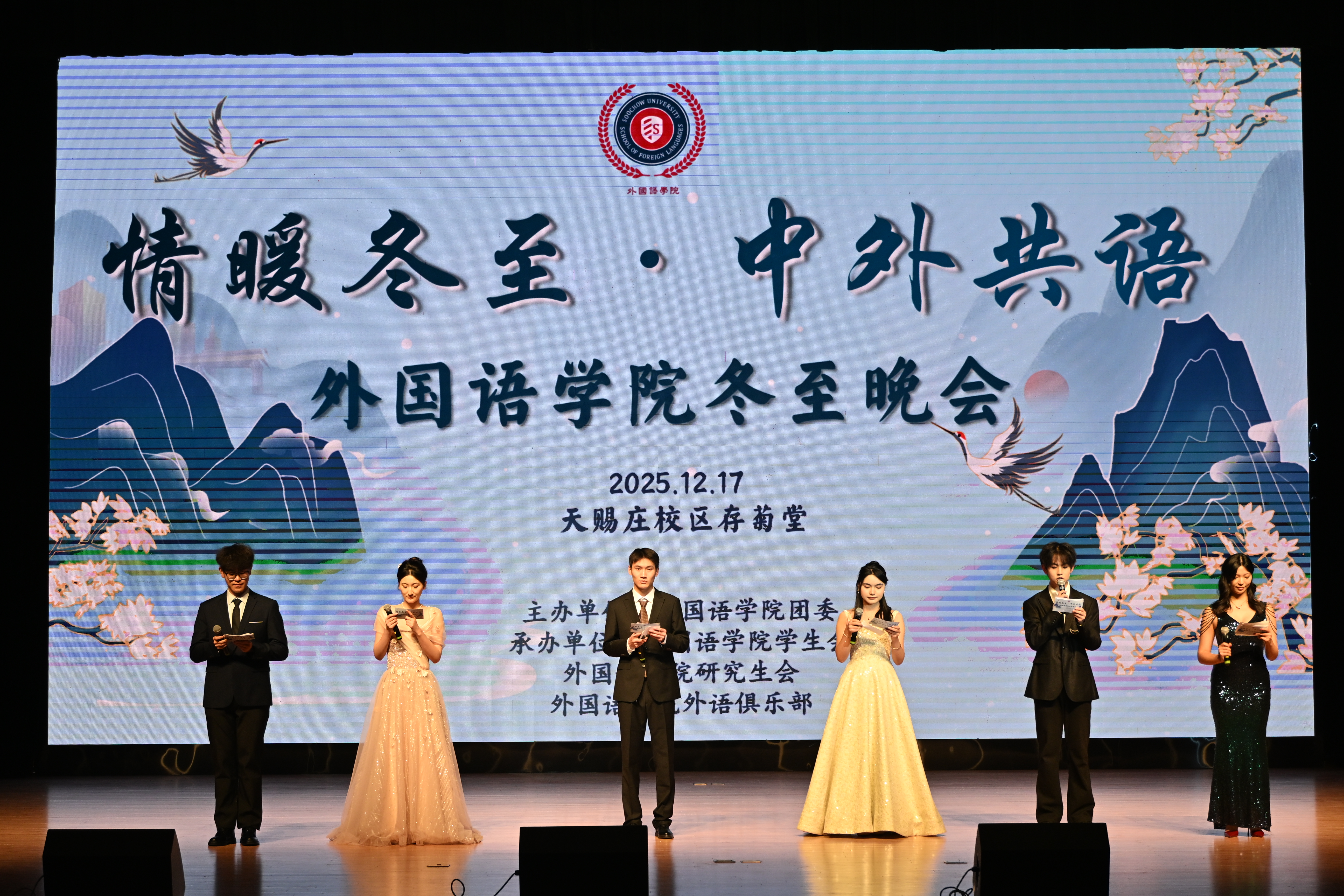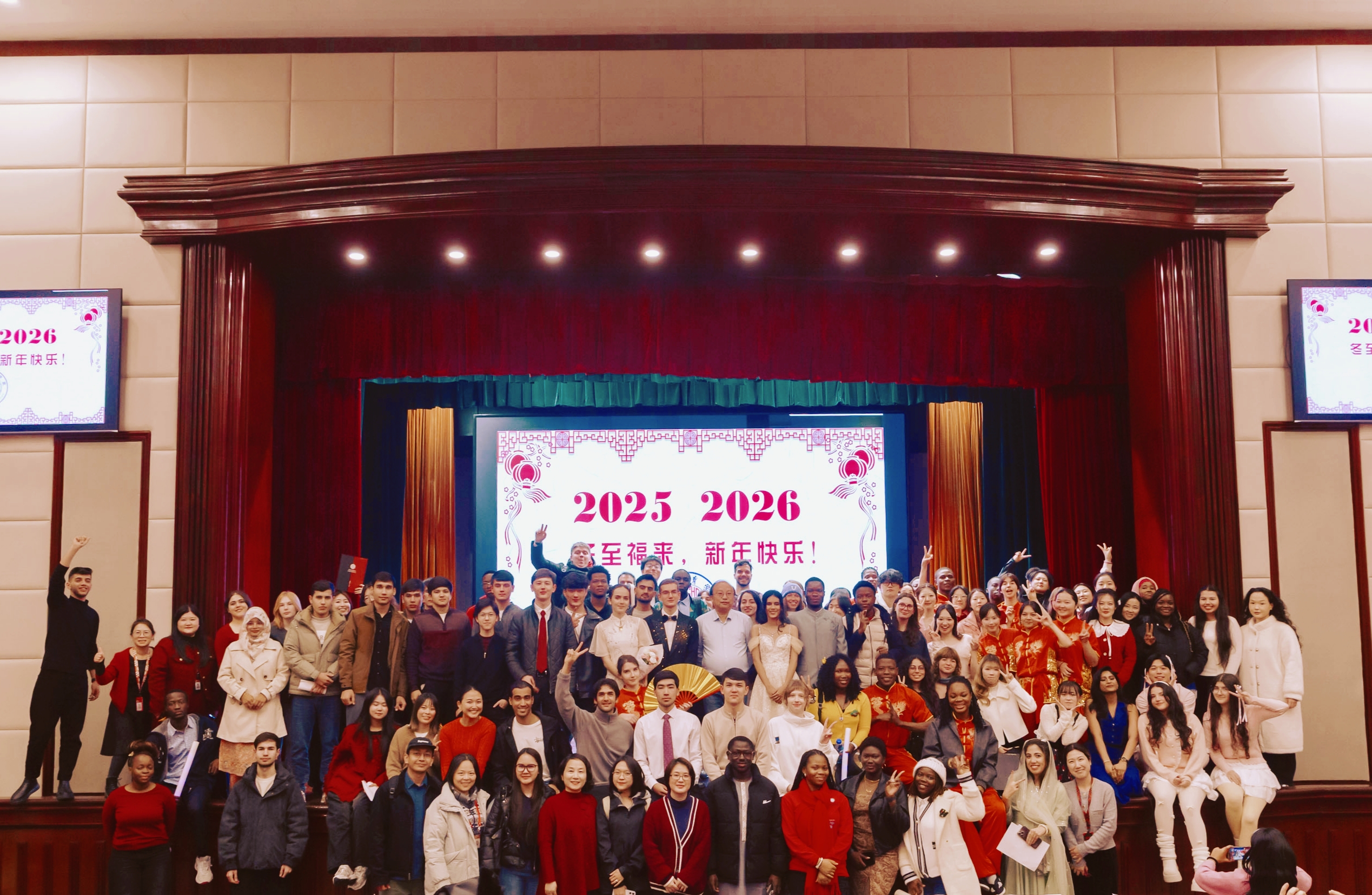 外国语学院举办“情暖冬至·中外共语”冬至文艺晚会,通过中外经典歌曲演唱、传统相声、武术、舞蹈表演和趣味互动,让中外师生领略节日的独特魅力。
