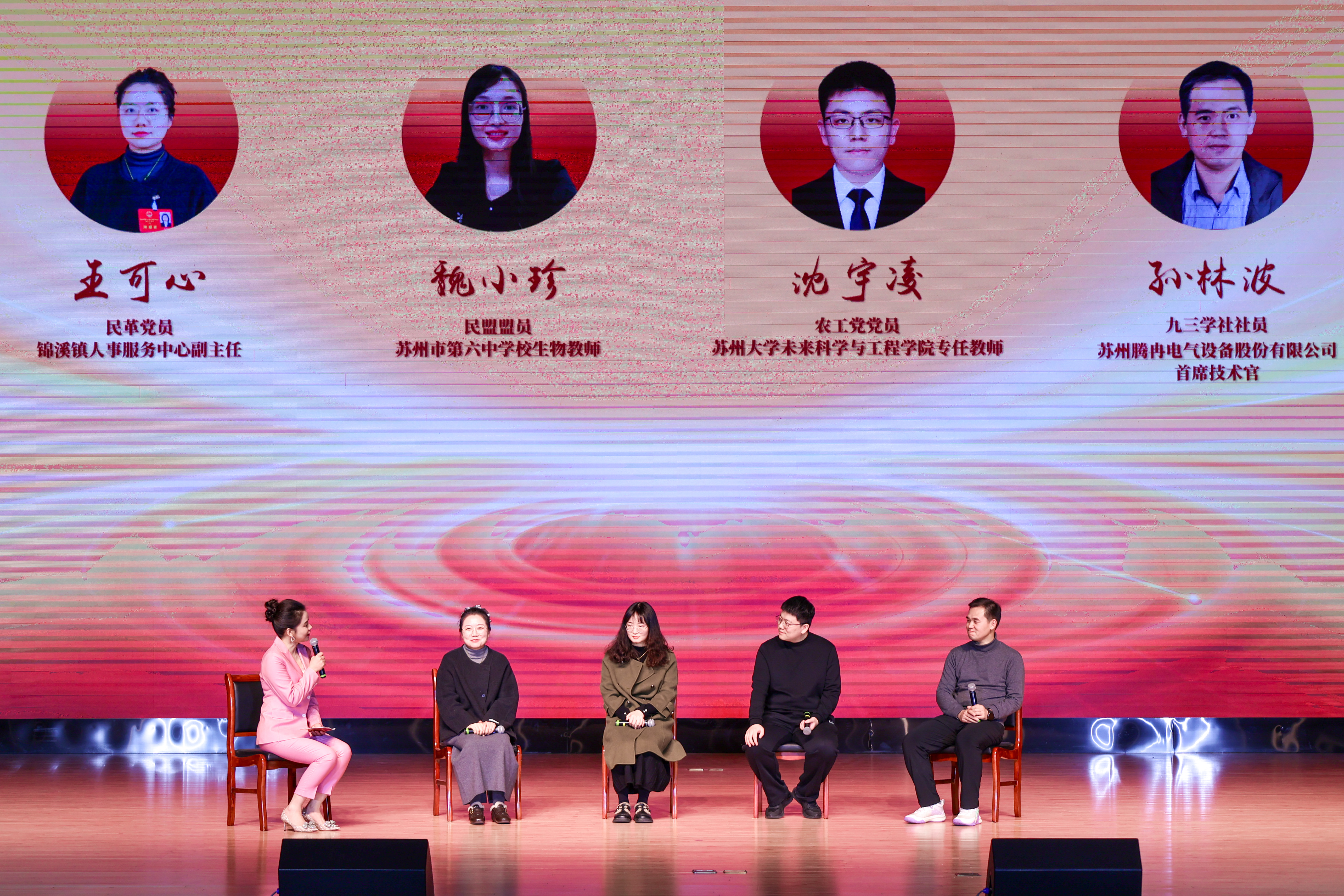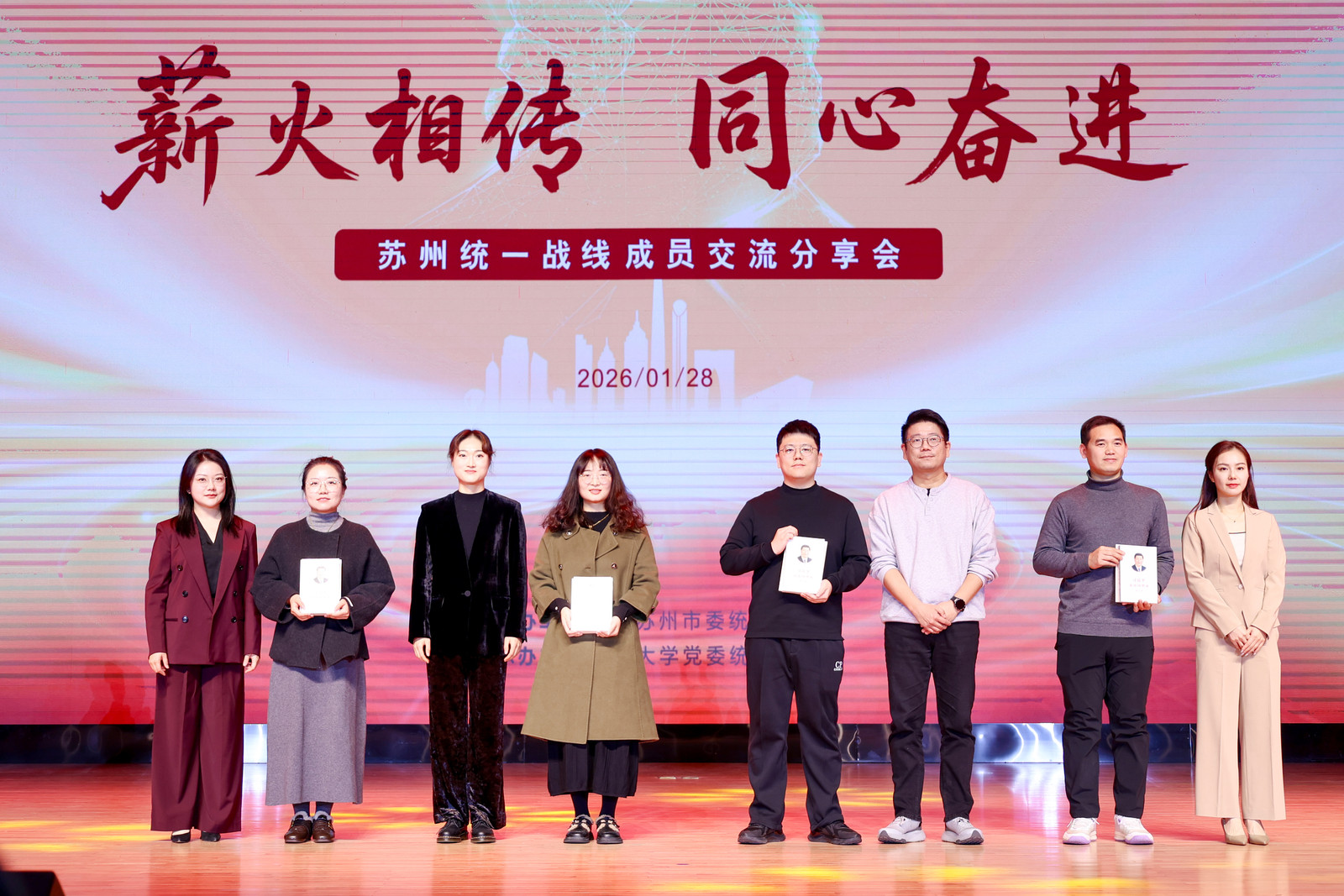 为深入学习贯彻习近平总书记关于做好新时代党的统一战线工作的重要思想和党的二十届四中全会精神,1月28日下午,“薪火相传 同心奋进”苏州统一战线成员交流分享会在我校举办。市委常委、统战部部长王飏,农工党省委会副主委、我校校长张桥,校党委常委、纪委书记、派驻监察专员宫向阳,各民主党派市委会主委朱依东、葛昕、单杰、唐丽艳、张健红、黄靖,市知联会会长李赞,市新联会会长唐海燕,市委统战部常务副部长王燕红等出席活动。