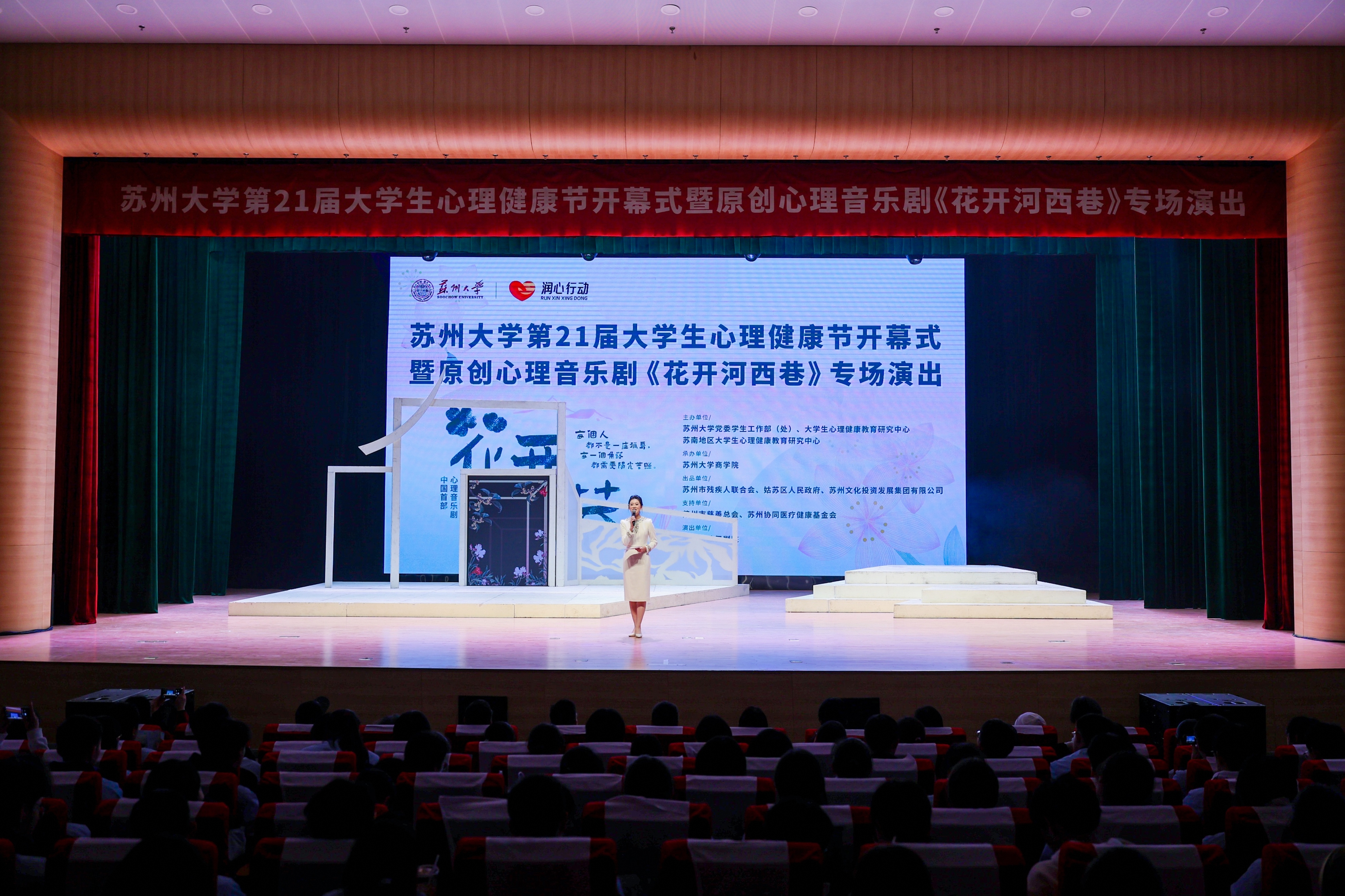 学校特邀苏州市歌舞剧院携中国首部心理音乐剧《花开河西巷》进行专场校园演出。该剧由苏州市残疾人联合会、姑苏区人民政府、苏州文化投资发展集团有限公司联合出品,曾获“戏剧中国”2021年度音乐剧类优秀剧本、2022年度苏州艺术基金扶持项目、2022年度姑苏区文艺精品创作扶持项目等荣誉,是关注心理健康、传递社会包容正能量的原创作品。