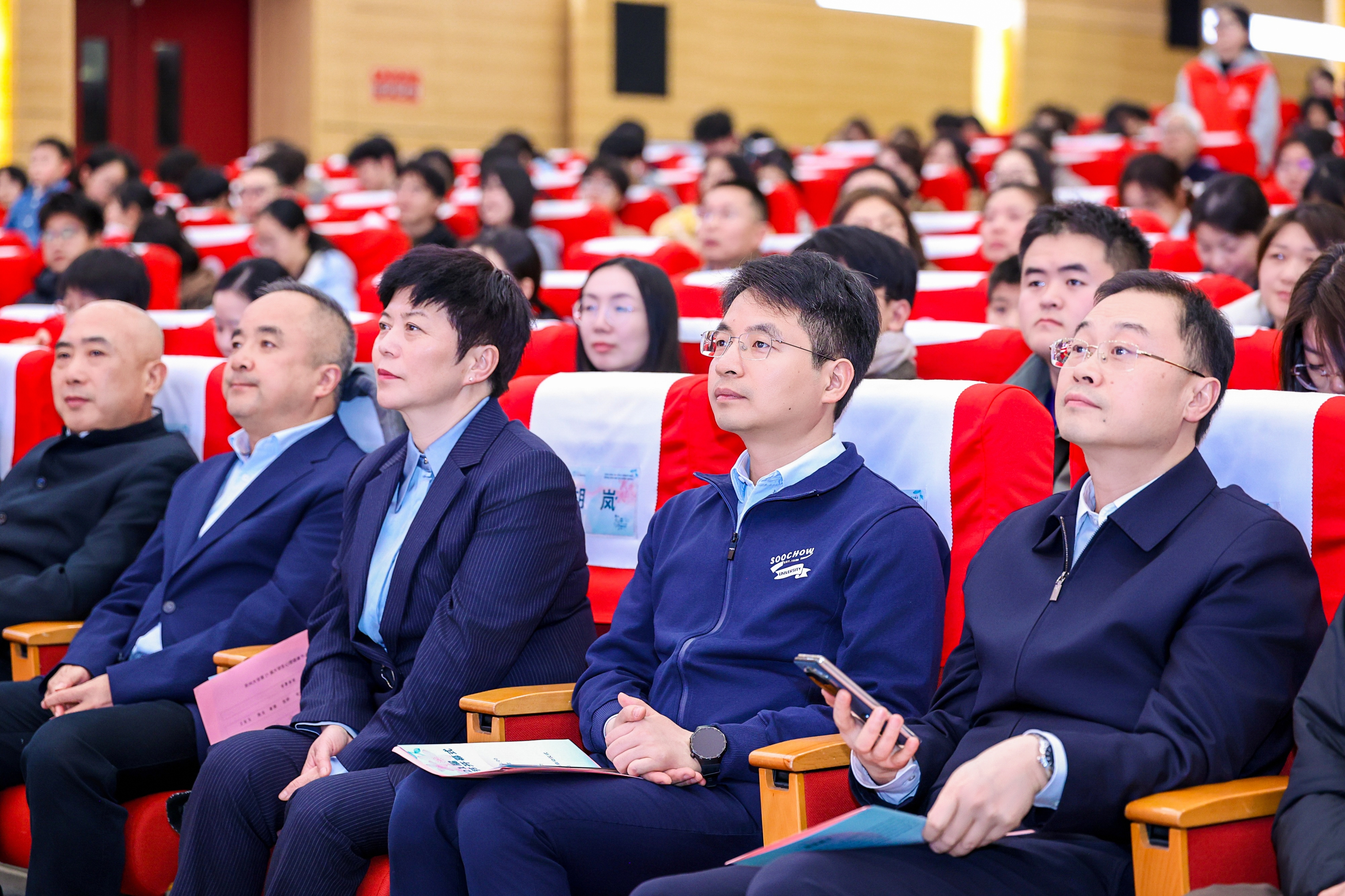 查佐明在致辞中强调,今年教育部新春第一会以“健康第一”为主题,全面部署推进学生身心健康工作。2023年习近平总书记在考察苏州平江路时指出“生活在这里很有福气”,学校有责任把校园打造成“福气苏州”的幸福样本。他指出,守护师生的心理健康是办学治校的底线,是衡量高质量发展的标尺,更是学校对每位学子成长成才的庄严承诺。对此,他提出了三点工作要求。一是要打开校门,用好姑苏文化这汪源头活水,深化校地融合,让江南文化的温婉、苏工苏作的匠心滋养师生心灵。二是要以美润心,让艺体之光照亮成长之路,践行“五育润心”,做深做实“体心融合”特色品牌,引导学生从“被动受教”向“主动参与、主动创造”转变。三是要全员参与,构建时时在线的温暖校园,让每一位苏大人都能感受“被看见、被理解、被支持”的温暖。