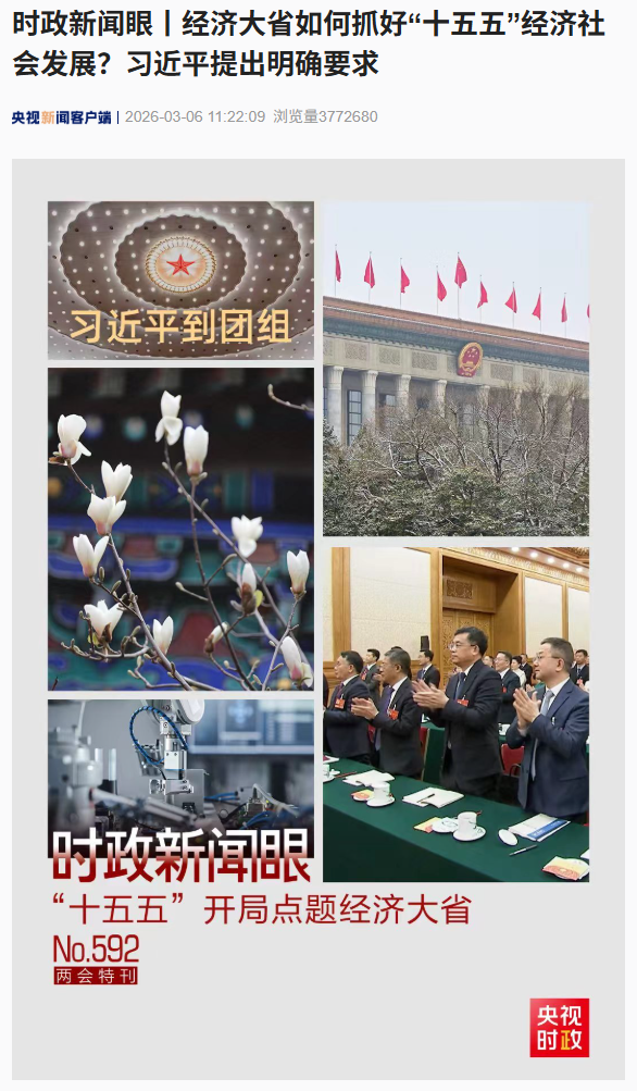 3月5日下午,中共中央总书记、国家主席、中央军委主席习近平参加他所在的十四届全国人大四次会议江苏代表团审议。