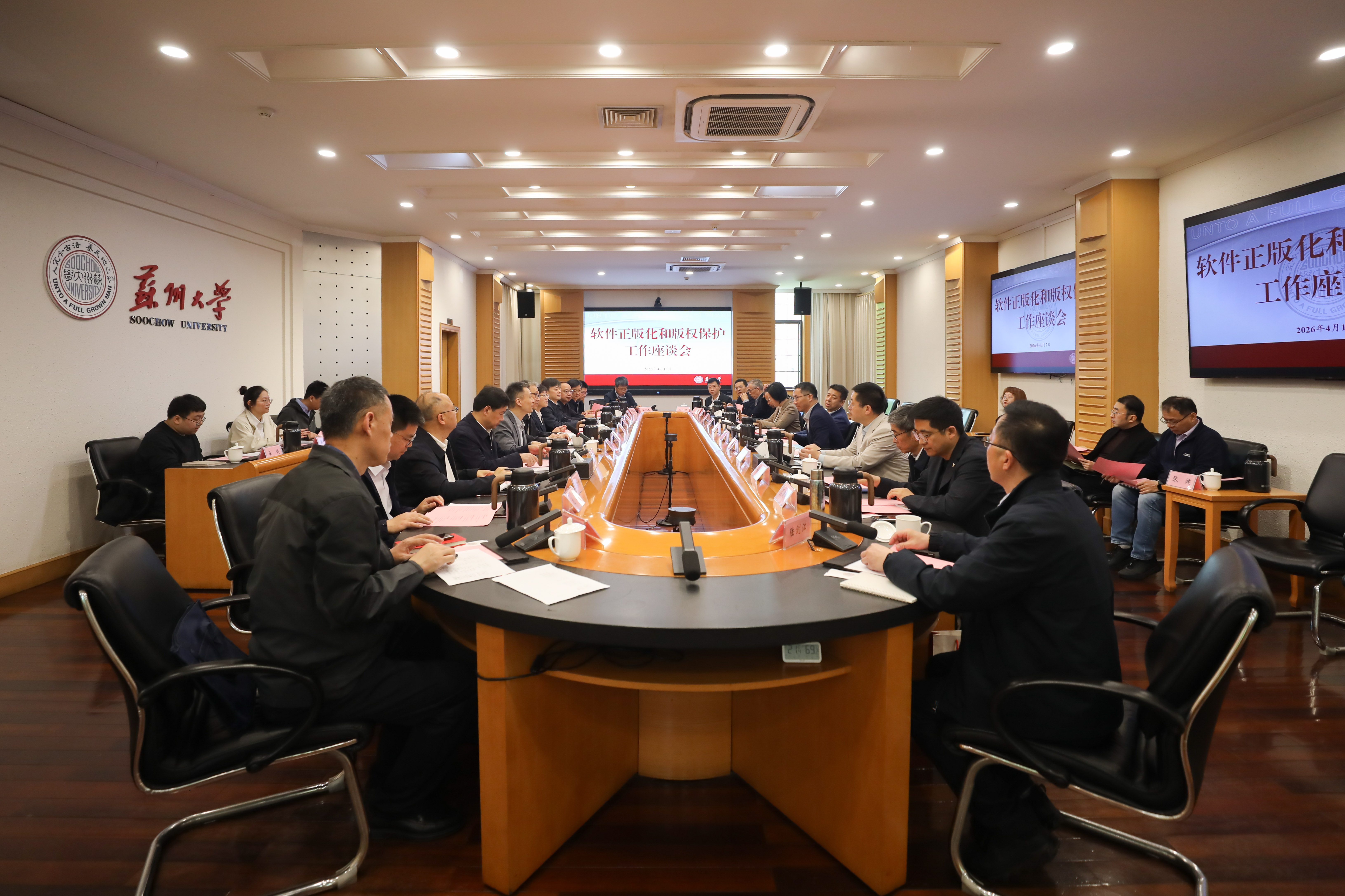 李孝峰对莅临调研指导的各位领导来宾表示欢迎。他表示,苏州大学认真贯彻落实上级各项部署要求,始终将知识产权与版权保护工作摆在办学治校、科技创新、人才培养的重要位置,坚持高质量创造与高效益转化协同发力,努力把知识产权优势转化为学校发展优势与服务区域发展优势。未来,学校也将认真落实上级指导意见,补齐短板、健全机制,持续提升知识产权治理能力和软件正版化管理水平。同时,加强与地方版权管理部门、长三角各兄弟高校、相关企业与机构的交流互鉴,共同提升区域知识产权创造、保护、运用、管理、服务整体水平,为打造全国领先的知识产权保护高地、服务教育强国与知识产权强国建设贡献力量。