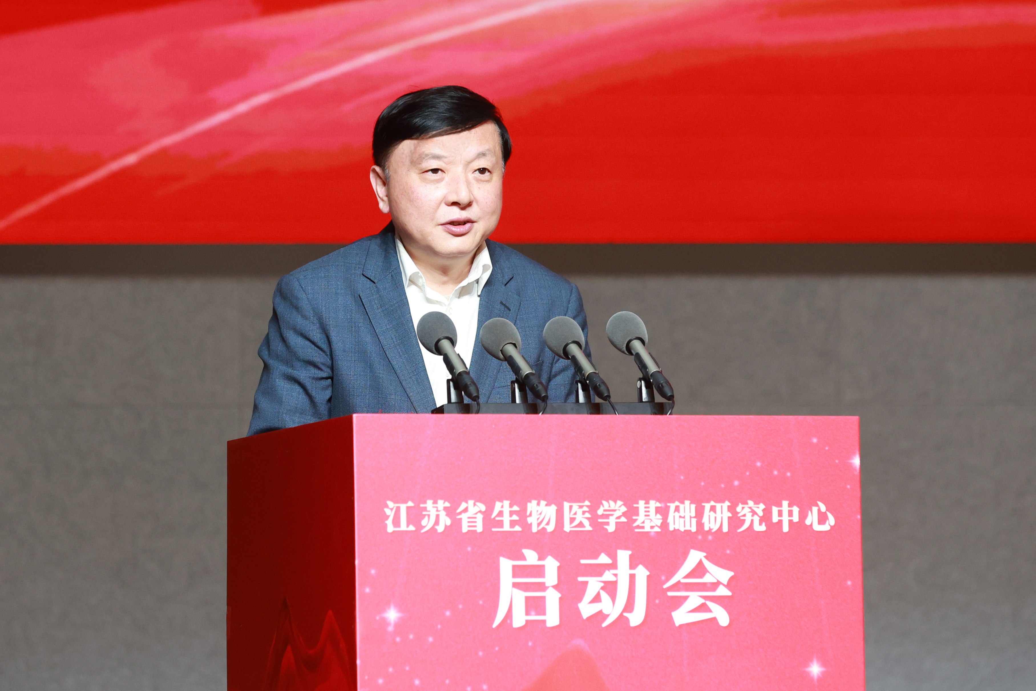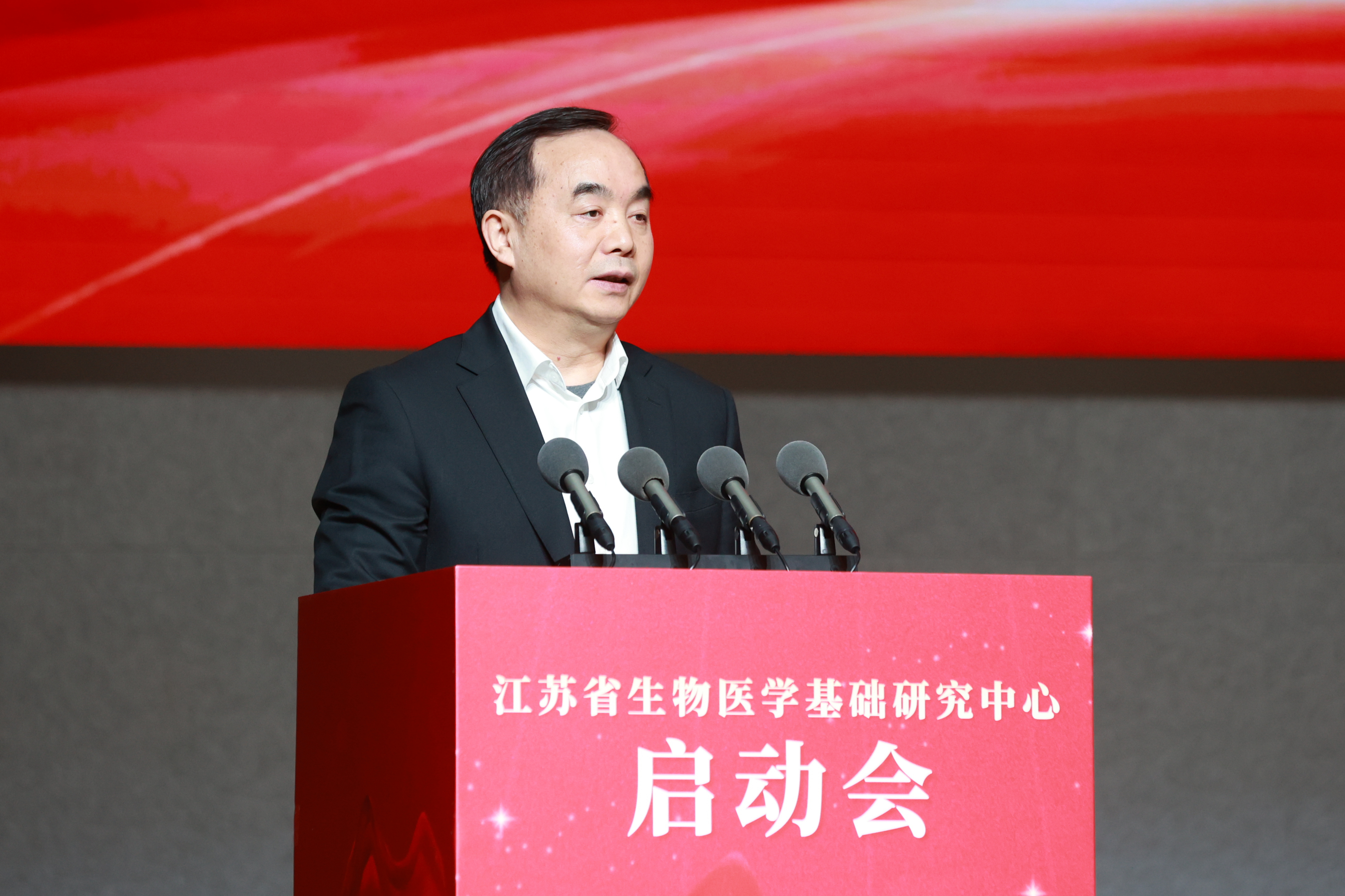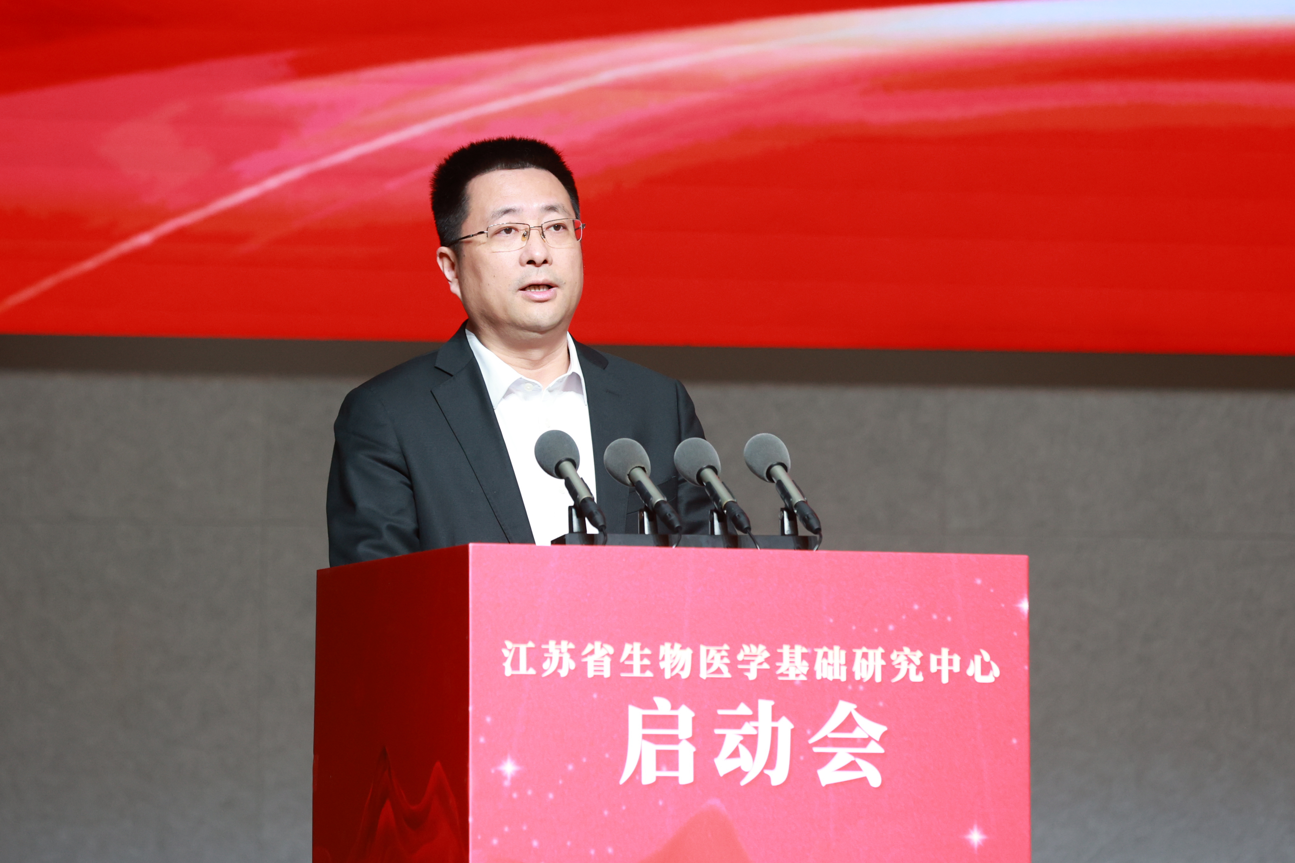 赵岩代表省政府对中心的成立表示祝贺。他指出,省委、省政府始终将高水平科技自立自强作为推动高质量发展的核心引擎。中心的启动是直面国家重大战略需求、人民生命健康的关键布局,也是江苏夯实创新根基、勇闯生命科学“无人区”的重要举措。对于中心的建设发展,他提出三点期望。一是要胸怀“国之大者”,提升策源能力。二是要创新体制机制,筑牢人才高地。三是要深化协同融合,加速成果转化。省政府将一如既往地支持中心建设发展,提供有力的政策保障、良好的发展环境。期待中心不负重托、砥砺前行,为健康中国建设和江苏高质量发展走在前列作出更大贡献。
