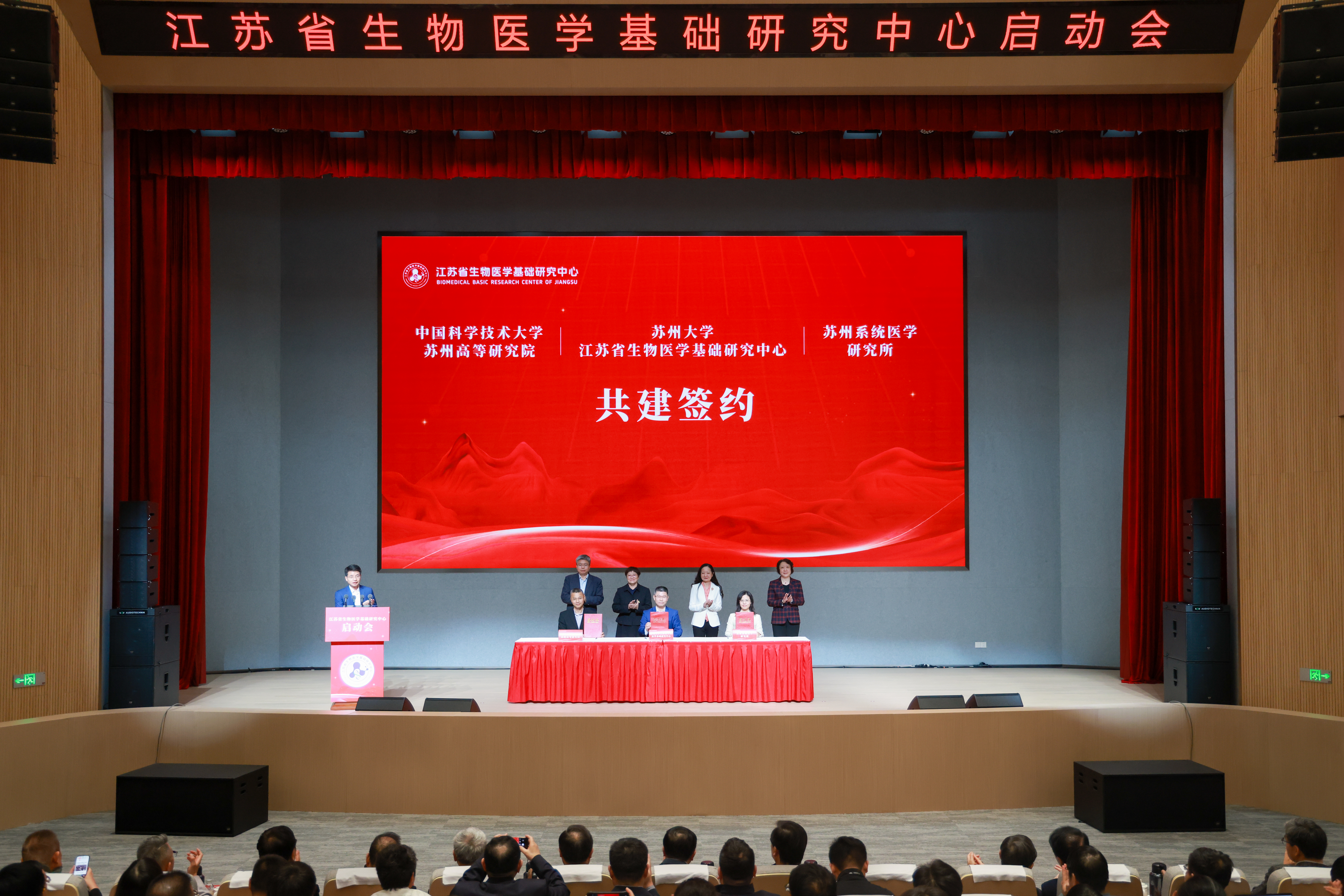 为构建生物医学基础研究的开放生态,形成攻关合力,现场还举行了中国科学技术大学苏州高等研究院、苏州系统医学研究所、江苏省生物医学基础研究中心合作共建签约仪式。