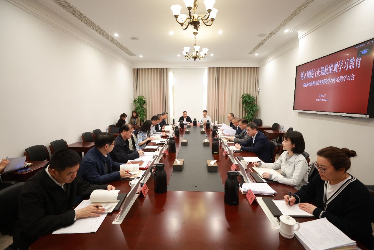 张晓宏要求,要严格按照党中央“学查改一体推进”的部署,高标准高质量落实学习教育各项任务。要全面贯彻习近平总书记重要论述精神,教育引导全校上下牢固树立和践行正确政绩观,坚持为人民出政绩、以实干出政绩。在“深学”基础上,发扬自我革命精神,深入查找在落实立德树人根本任务、推动学科内涵发展、服务国家战略与区域需求等方面是否存在政绩观偏差。要把解决政绩观方面突出问题与深入贯彻中央八项规定精神学习教育整改相结合,与抓好省委巡视整改相贯通,建立清单、边查边改、真改实改。领导干部要发挥“头雁”作用,切实把学习成果转化为学校“十五五”规划实施、新一轮“双一流”建设等中心工作的具体举措,以正确政绩观推动学校高质量发展,努力实现“十五五”开好局、起好步。
