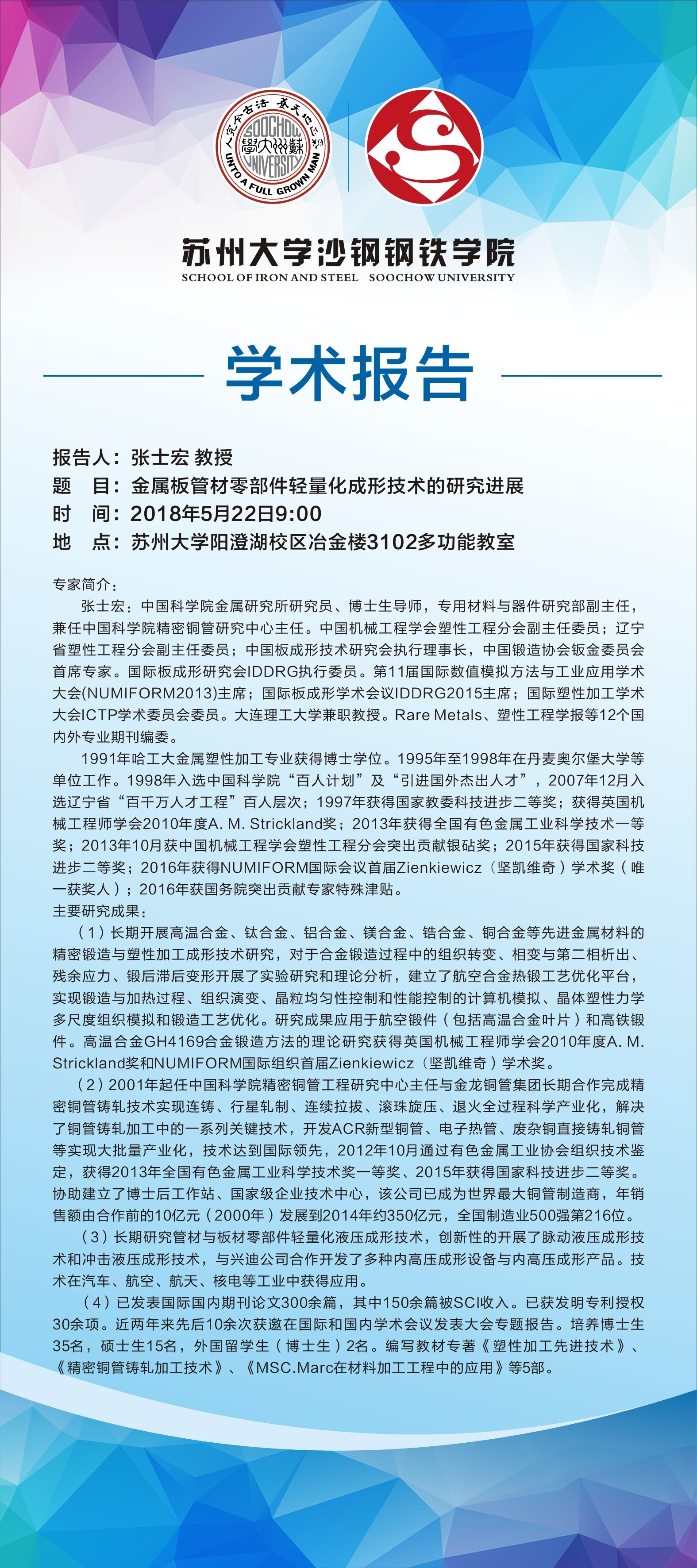 沙钢钢铁学院学术报告:金属板管材零部件轻量化成形技术的研究进展