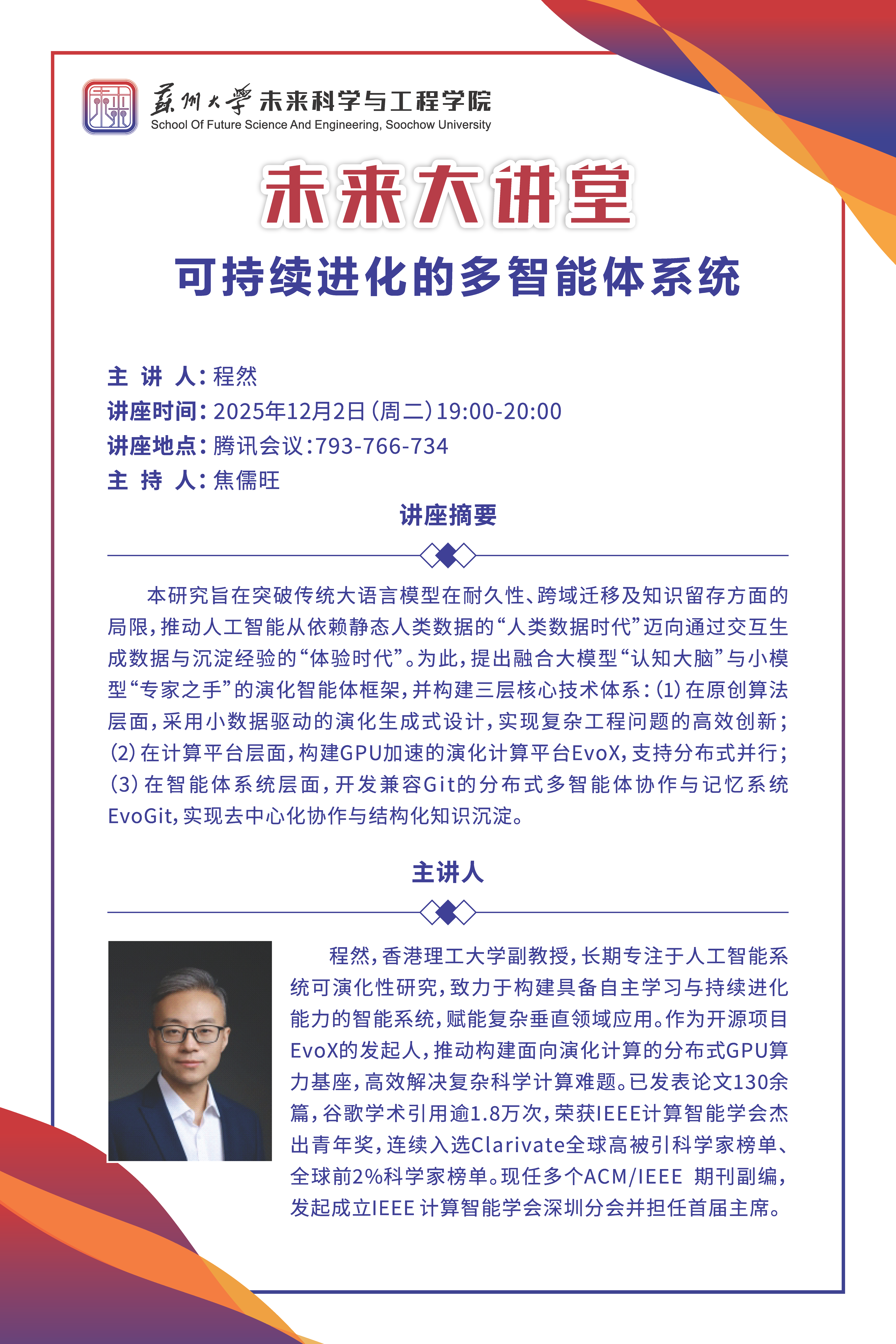 未来科学与工程学院|未来大讲堂:可持续进化的多智能体系统
