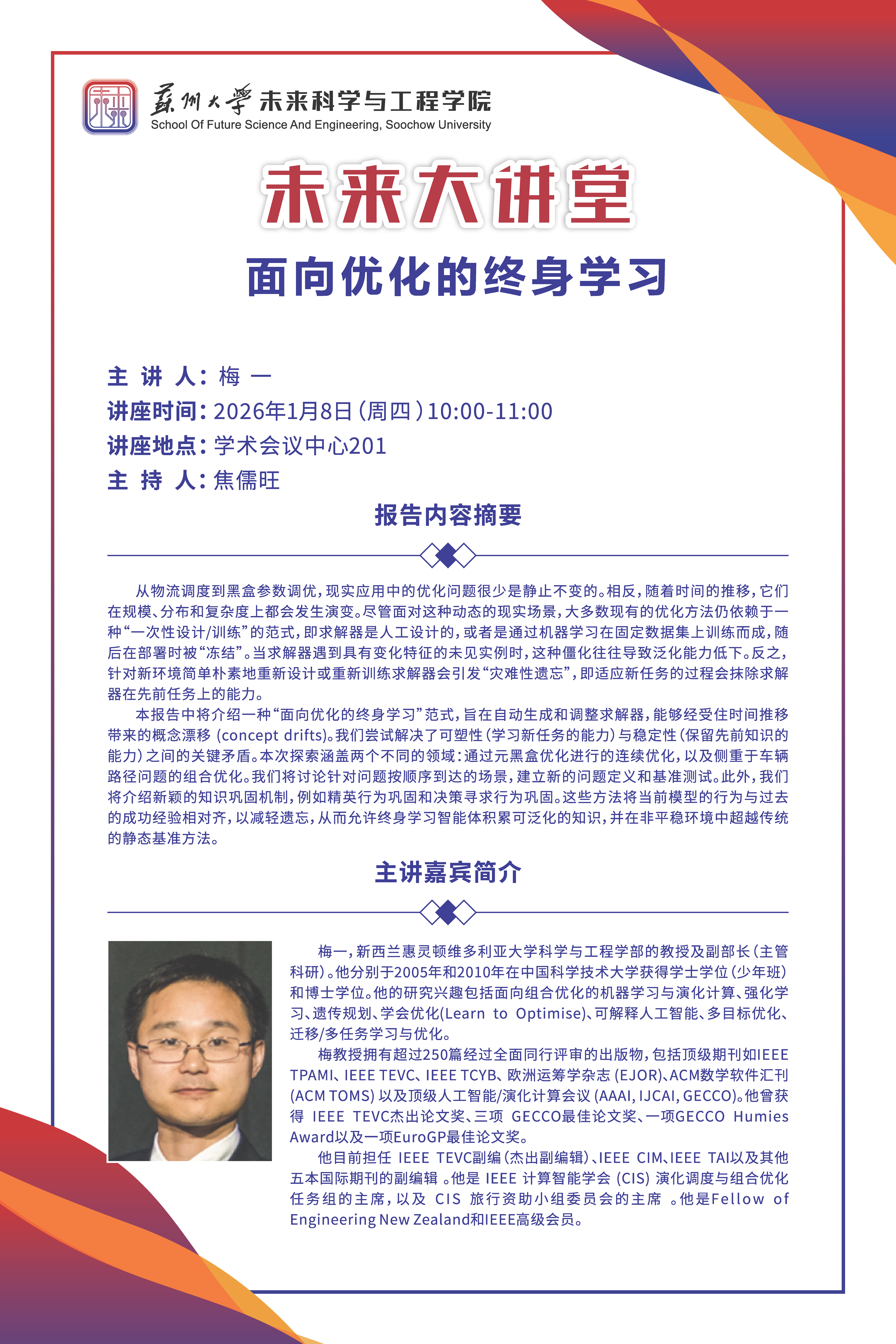 未来科学与工程学院|未来大讲堂:面向优化的终身学习