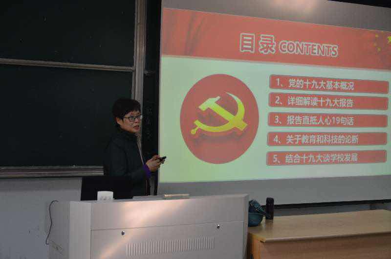 11月15日下午,计算机科学与技术学院党委举办学习贯彻党的十九大精神报告会,校党委副书记、副校长路建美教授应邀以 “不忘初心, 牢记使命——学习贯彻落实党的十九大精神”为题为学院全体教师及部分学生党员代表做了宣讲报告。报告会由学院党委书记杨礼富研究员主持。