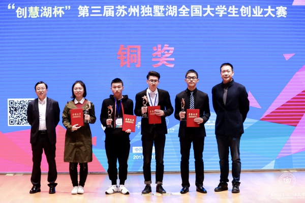 11月17日,“创慧湖杯”第三届苏州独墅湖全国大学生创业大赛总决赛在苏州大学独墅湖校区隆重举行。本次大赛由苏州独墅湖科教创新区管理委员会与苏州大学联合主办,苏州独墅湖创业大学以及苏州大学学生创新创业教育中心共同承办。全国85所高校近600个项目报名参赛,经初赛、复赛,30支团队进入总决赛,决赛分A、B两组同时进行,共决出金奖2名、银奖5名,铜奖8名以及鼓励奖15名。文正学院创意创业园孵化项目“苏州甲库档案信息科技有限公司”,凭借其优异表现,以A组第六的成绩荣获铜奖。