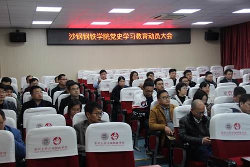 3月24日,沙钢钢铁学院召开党史学习教育动员大会,深入学习贯彻习近平总书记在党史学习教育动员大会上的重要讲话精神,按照中央《关于在全党开展党史学习教育的通知》的要求和学校党委的部署,对学院党史学习教育进行动员部署。会议由院党委副书记徐海洋主持,全体党员参加了会议。