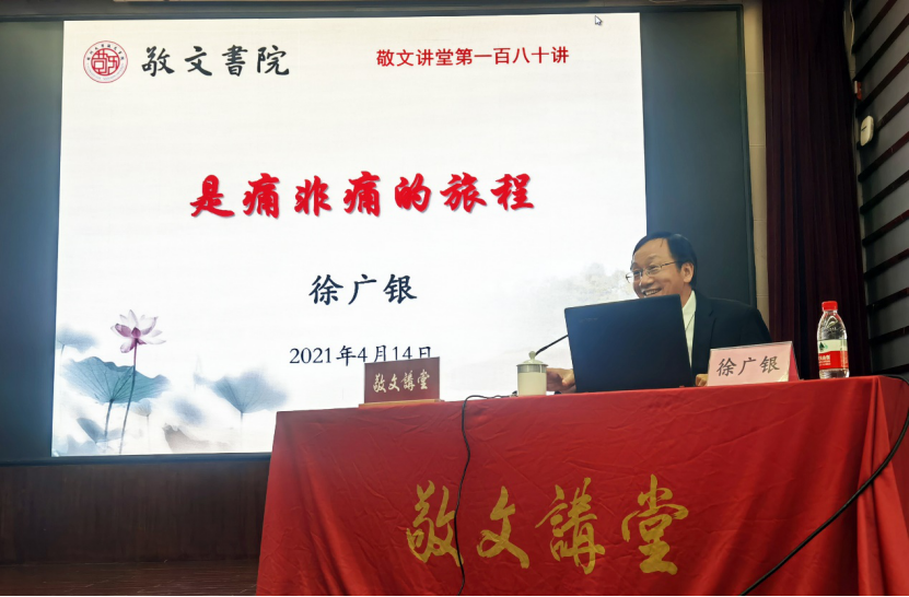 4月14日下午,中国神经科学学会副理事长、苏州大学医学部常务副主任徐广银教授做客敬文讲堂,主讲题为《是痛非痛的旅程》的专题讲座。讲座由敬文书院院长钱振明教授主持。