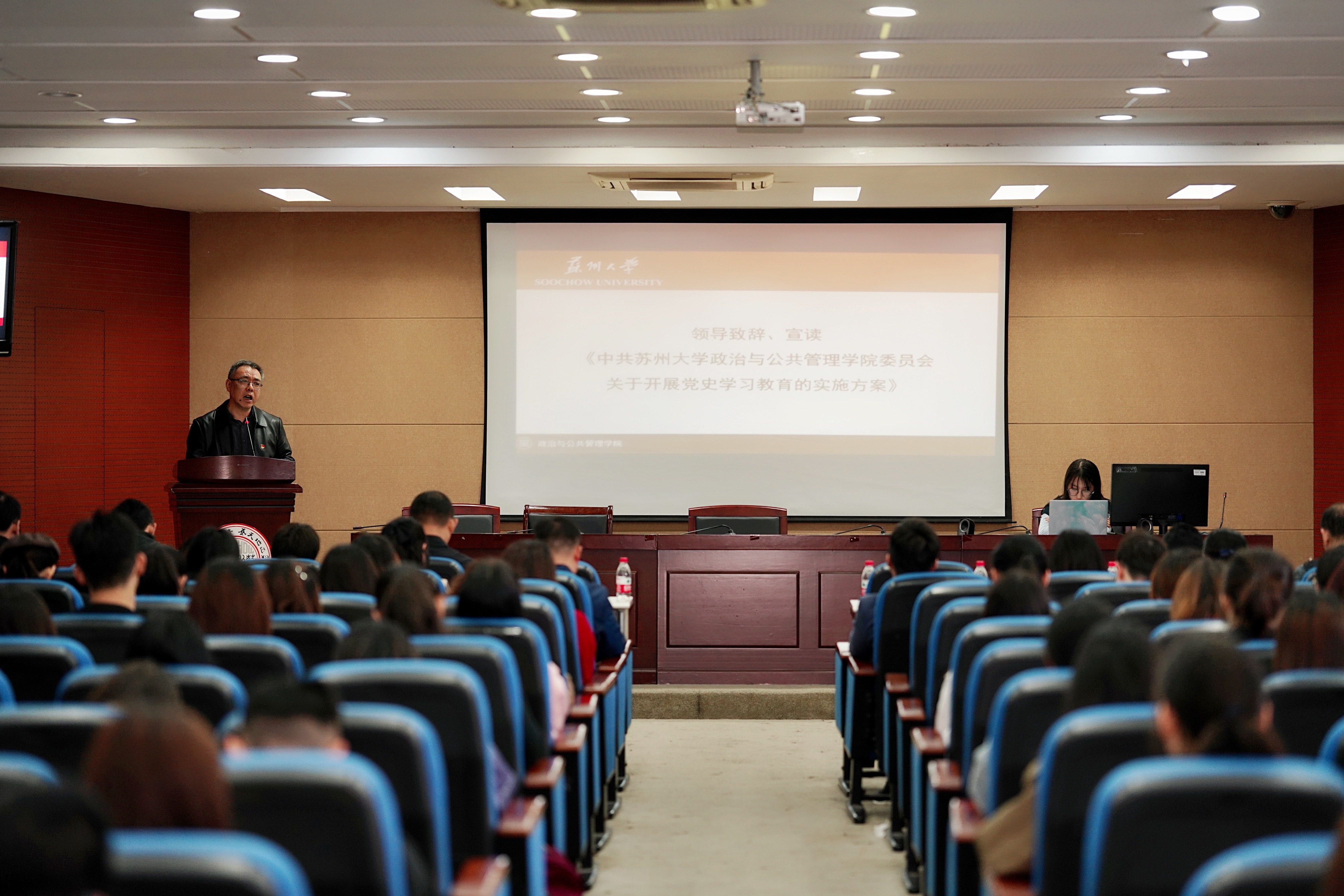 4月7日,政治与公共管理学院召开党史学习教育动员部署会暨第65期党的基本知识培训班、第44期预备党员培训班开班典礼,深入学习贯彻习近平总书记在党史学习教育动员大会上的重要讲话精神,贯彻落实中央、省委和校党委党史学习教育部署要求。学院党委书记邢光晟、学院相关领导、特邀党史专家席富群教授、院本科生与研究生党总支委员、院各支部书记与支委委员、行政支部全体党员、第65期党的基本知识培训班学员及第44期预备党员培训班学员等参加了本次会议。会议由学院党委副书记、副院长徐美华主持。