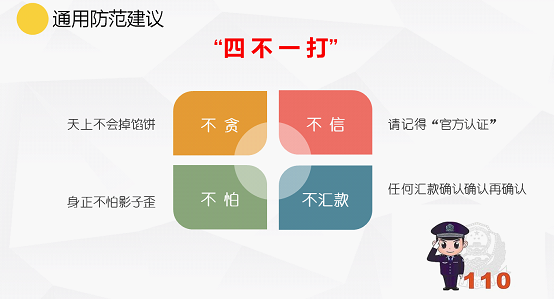 最后,徐海龙与各位同学分享了“四不一打”安全防范建议,号召全体学生要将不贪、不信、不怕、不汇款牢记于心、贯彻于行。