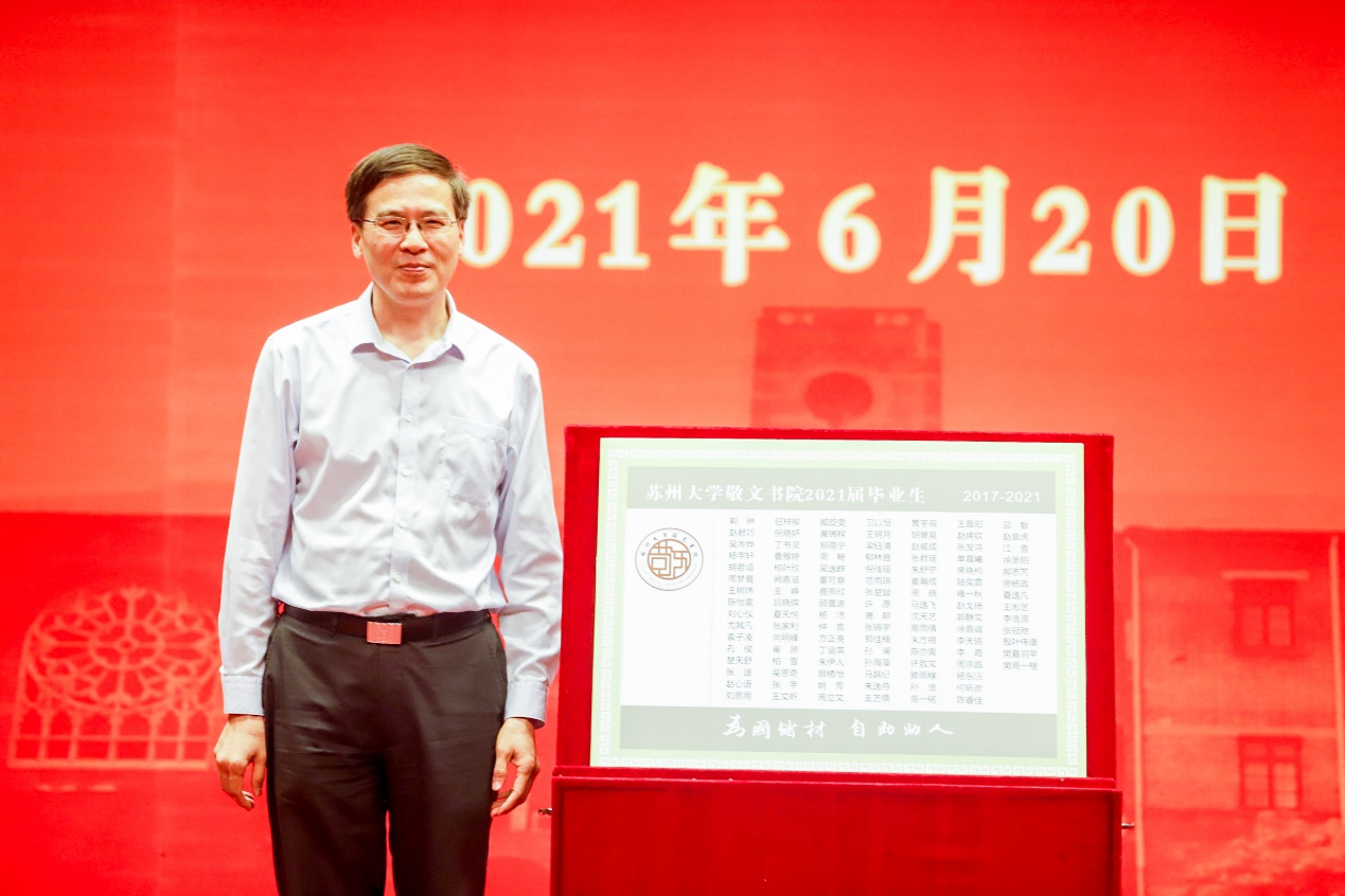 校党委常委、宣传部部长陈晓强为敬文书院2021届毕业生铭牌揭牌。全体2021届敬文书院毕业生的名字镌刻在铭牌上,记载了又一个令书院骄傲的学生群体。