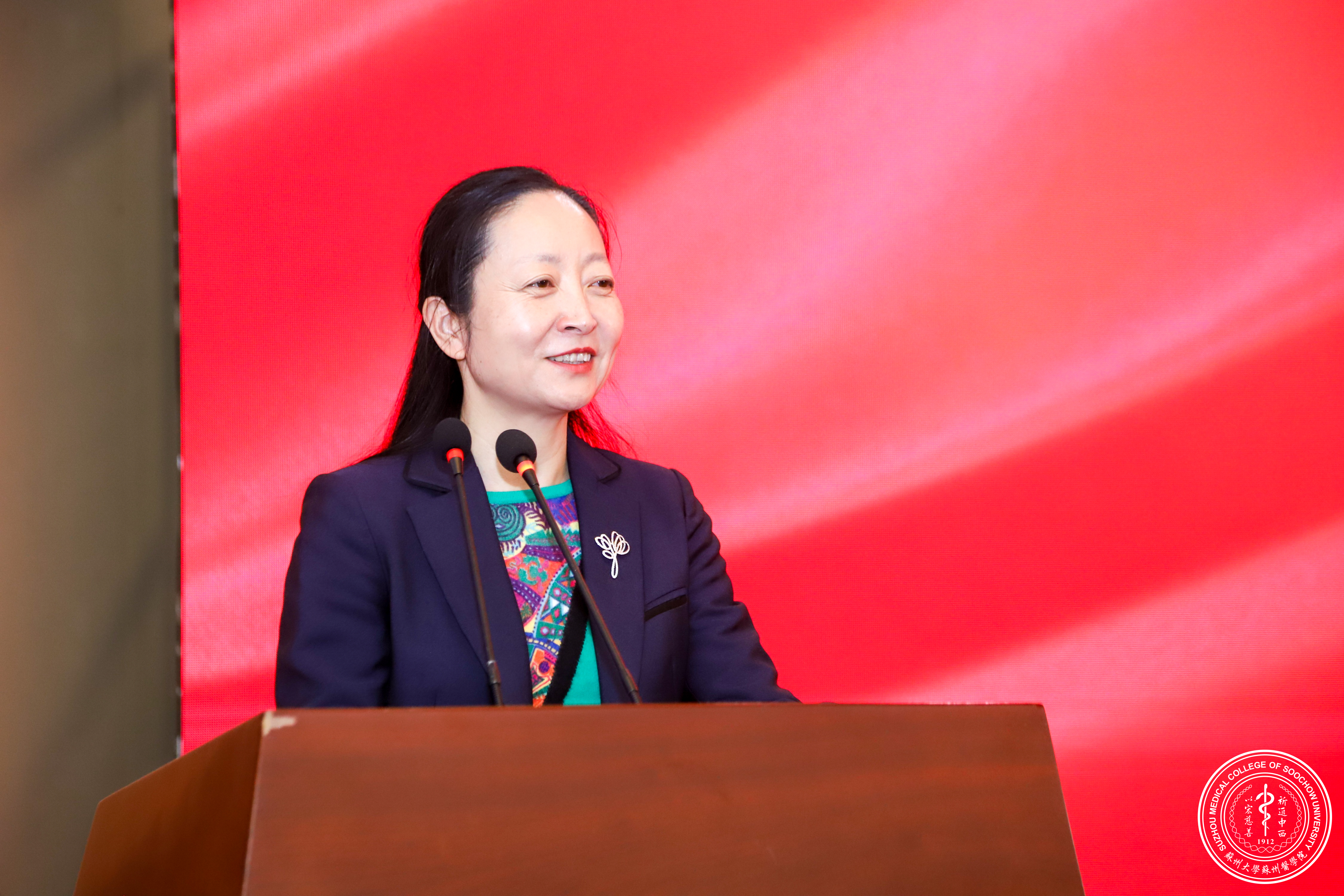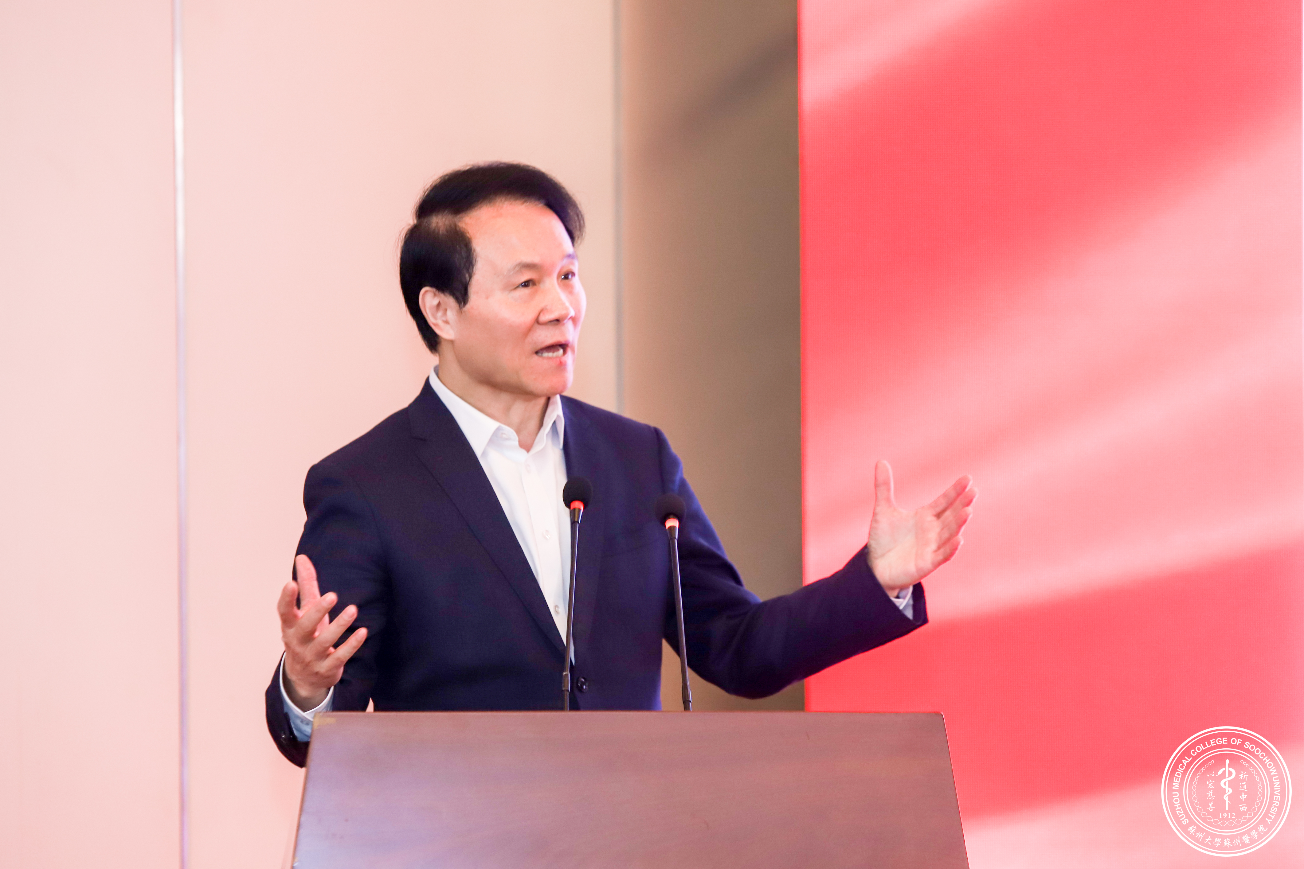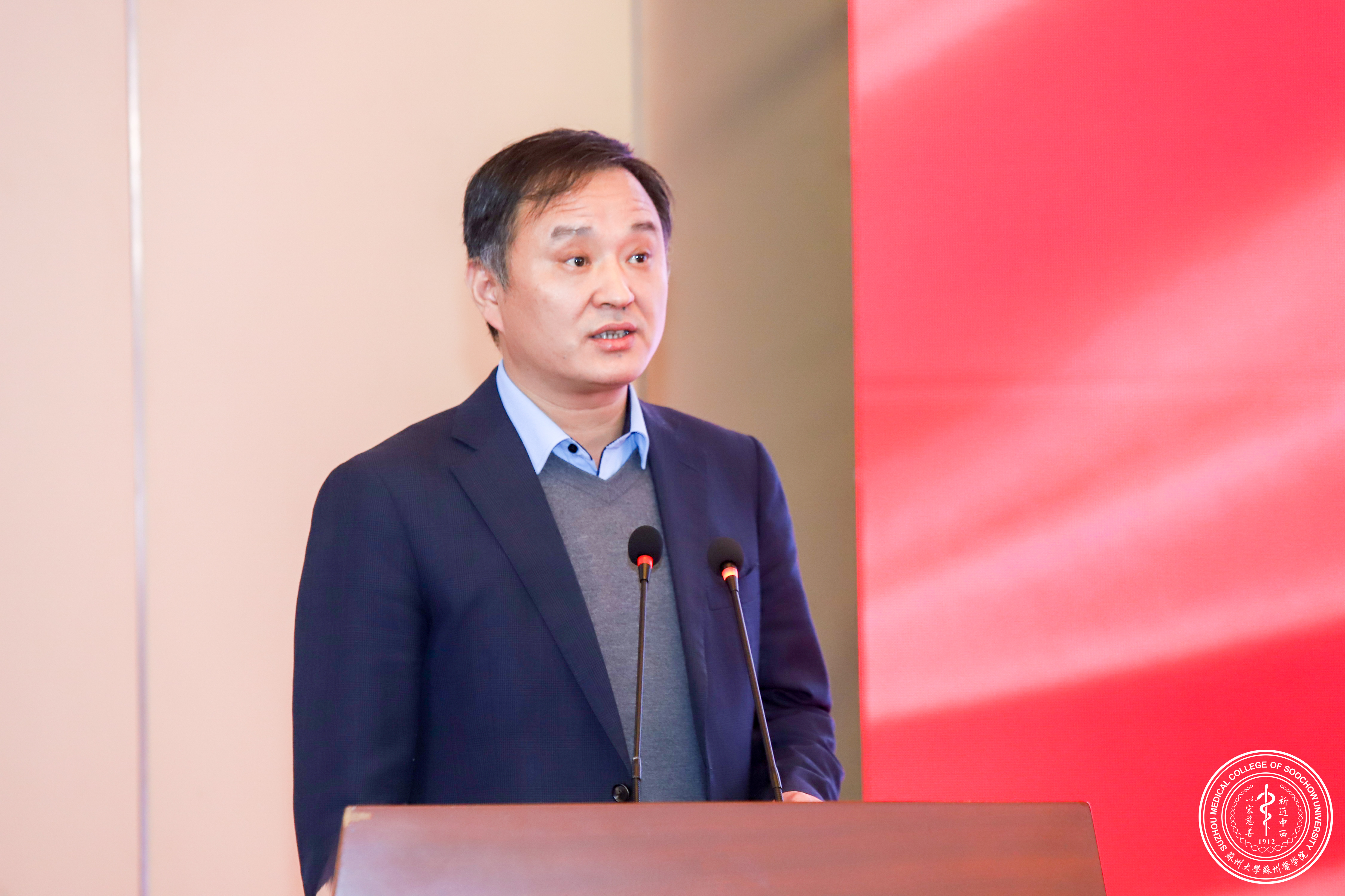 吴嘉炜副校长在会议讲话中指出,“四方共建”苏州医学院以来,组织架构日臻完善,与附属医院联系日益密切,取得一系列可喜成绩。在建设国家一流医学院的征途中,医学院还需要从以下几个方面继续努力。一是加强医学人文建设。医学首先是人学,医学人文教育是医学教育的重要组成部分,医学院在学生的培养环节中要注意借鉴国内外兄弟院校成熟的办学经验。二是办好“医学+X”。苏州医学院要有意识地利用综合性大学办医学教育的优势,与理、工、文等学科加强专业交流,实现学科交叉共进。三是充分考虑医学生培养的独特性。当前大部分医院都在建设研究型医院,医学院要与各医院加强科研合作,推动临床科研成果转化落地,推动附属医院的发展。四是医学院的发展应注重“医、教、研、产”四位一体。生物医药是苏州重点打造的“一号产业”,医学院坐落于工业园区,在与地方合作方面有着得天独厚的优势,应以生物医药为立足点,在做好教学工作的同时,服务地方发展。当前正处于后疫情时代,新冠病毒感染人员后期的长期康复、人口老龄化等问题都是医学的研究重点。医学院也需要更多担起回报社会的职责,彰显医学院作用。五是进一步推进唐楼建设。她最后强调,苏州医学院建设是我们共同的事业,希望全体师生能够更多的提供宝贵建议和切实改进方案,相信在大家的共同努力下,苏州医学院能够早日建设成为国内一流、国际一流的医学院,助推苏州大学高质量发展。