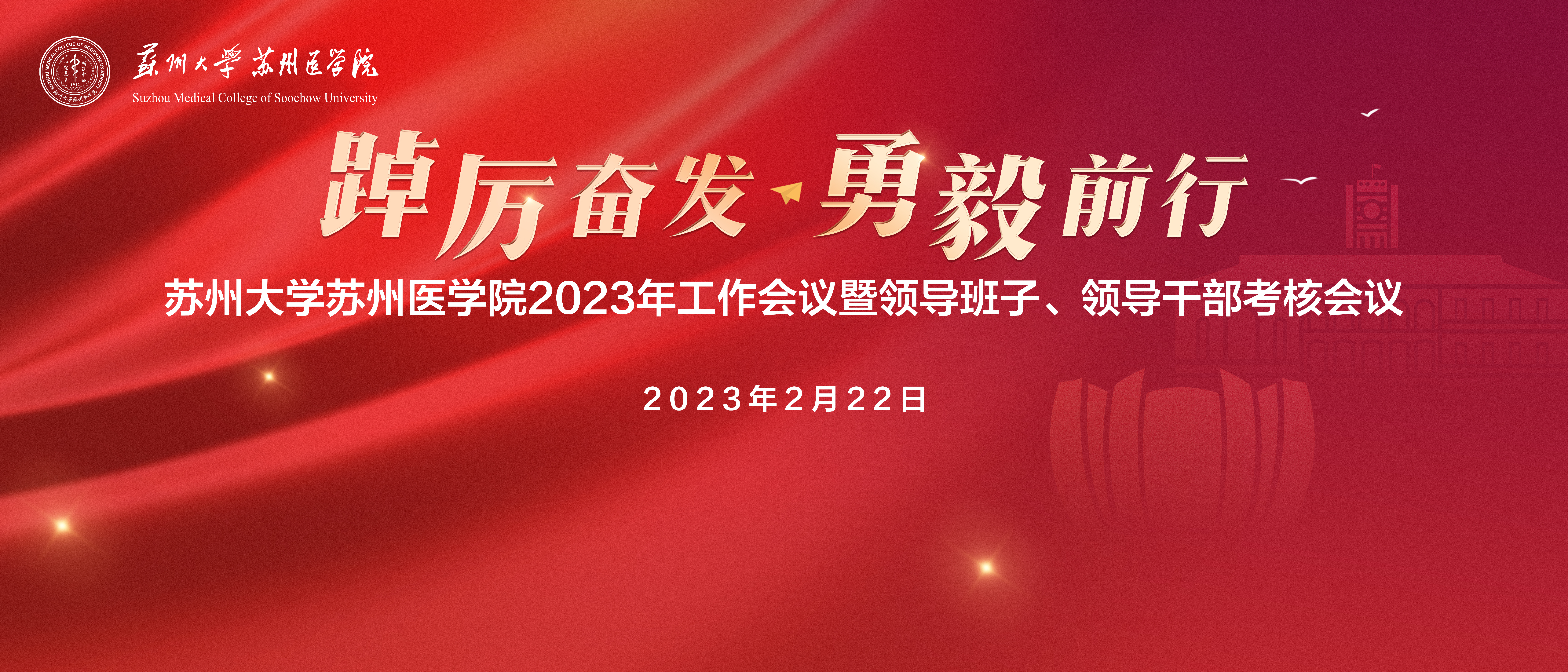 2月22日,苏州大学苏州医学院2023年工作会议暨领导班子、领导干部考核会议在独墅湖校区炳麟图书馆学术报告厅召开。副校长吴嘉炜,中国工程院院士、苏州医学院院长詹启敏,苏州医学院党政领导班子成员,各学院、各直属附属医院党政主要负责人,各校级科研机构主要负责人,学术委员会委员和学位评定委员会委员代表,市级及以上党代表、人大代表、政协委员,各民主党派主要负责人,学院在职副处级及以上干部及学院“两代会”代表出席会议。会议由苏州医学院执行院长徐广银主持。