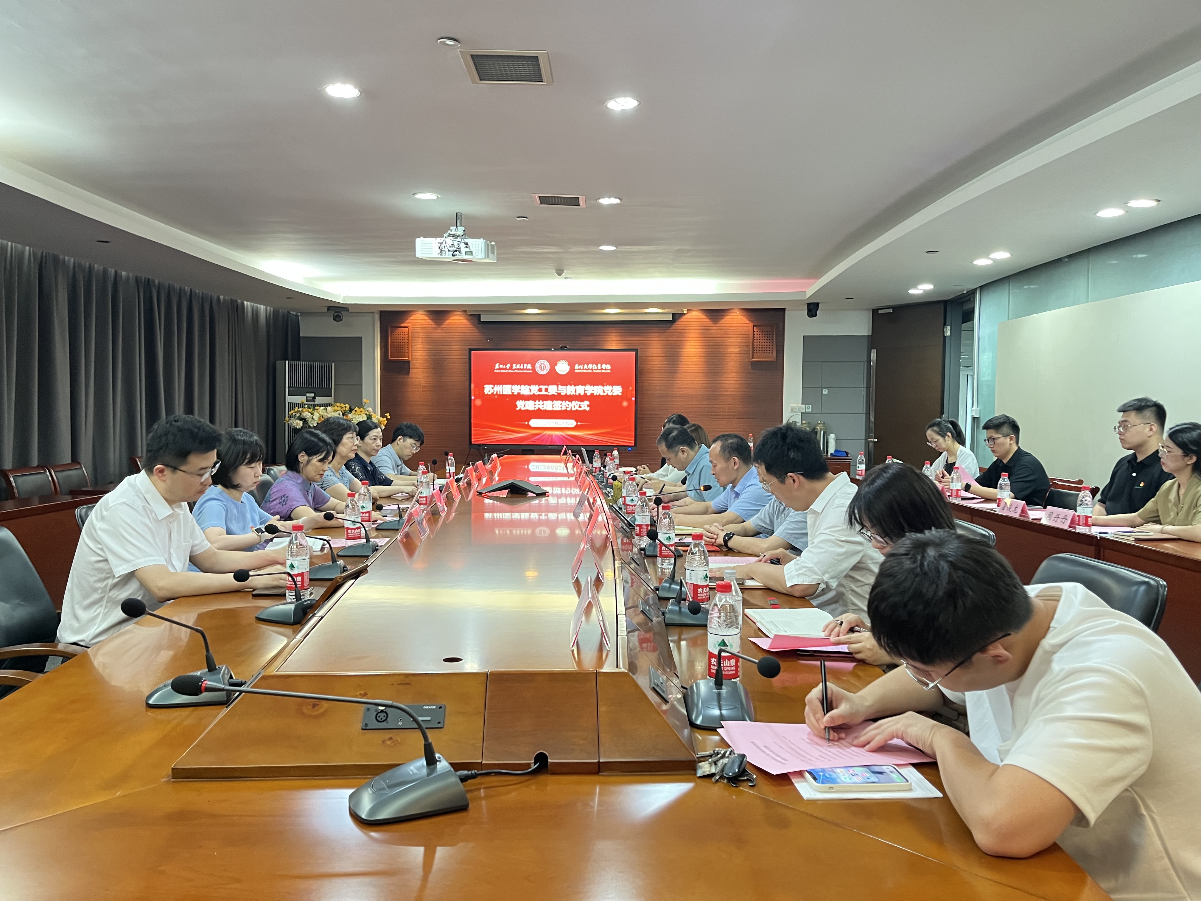 为进一步推进研究生心理健康教育工作,提升苏州医学院研究生辅导员的心理育人理论水平与实践能力,以党建为引领,促进党建与业务深度融合,6月29日上午,苏州医学院党工委与教育学院党委举行党建共建签约仪式。教育学院党委书记赵阳,苏州医学院党工委书记钱福良,双方学院的副书记、副院长、专职组织员、研究生专职辅导员和相关负责人、教师代表参加会议。会议由苏州医学院党工委副书记吴德建主持。