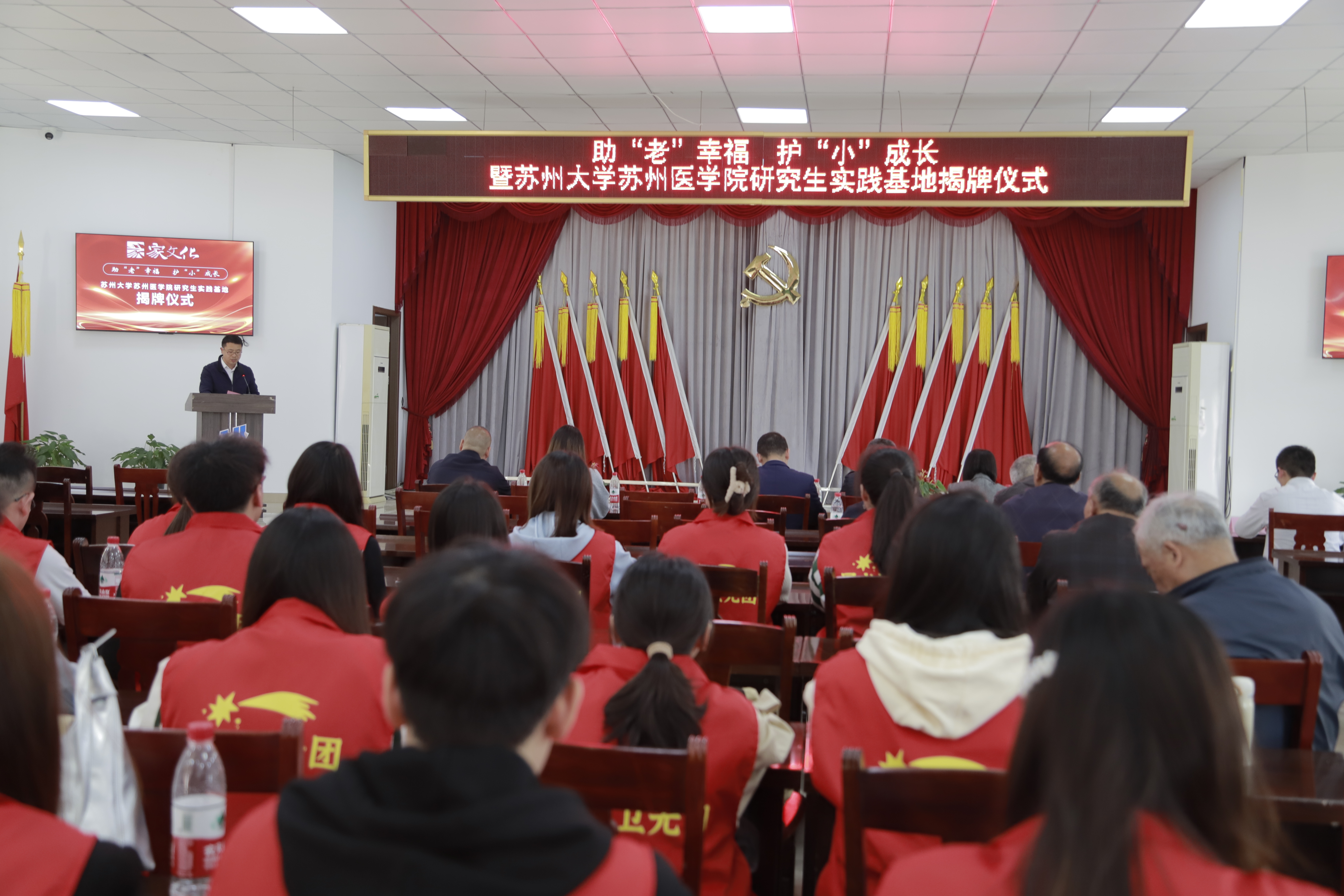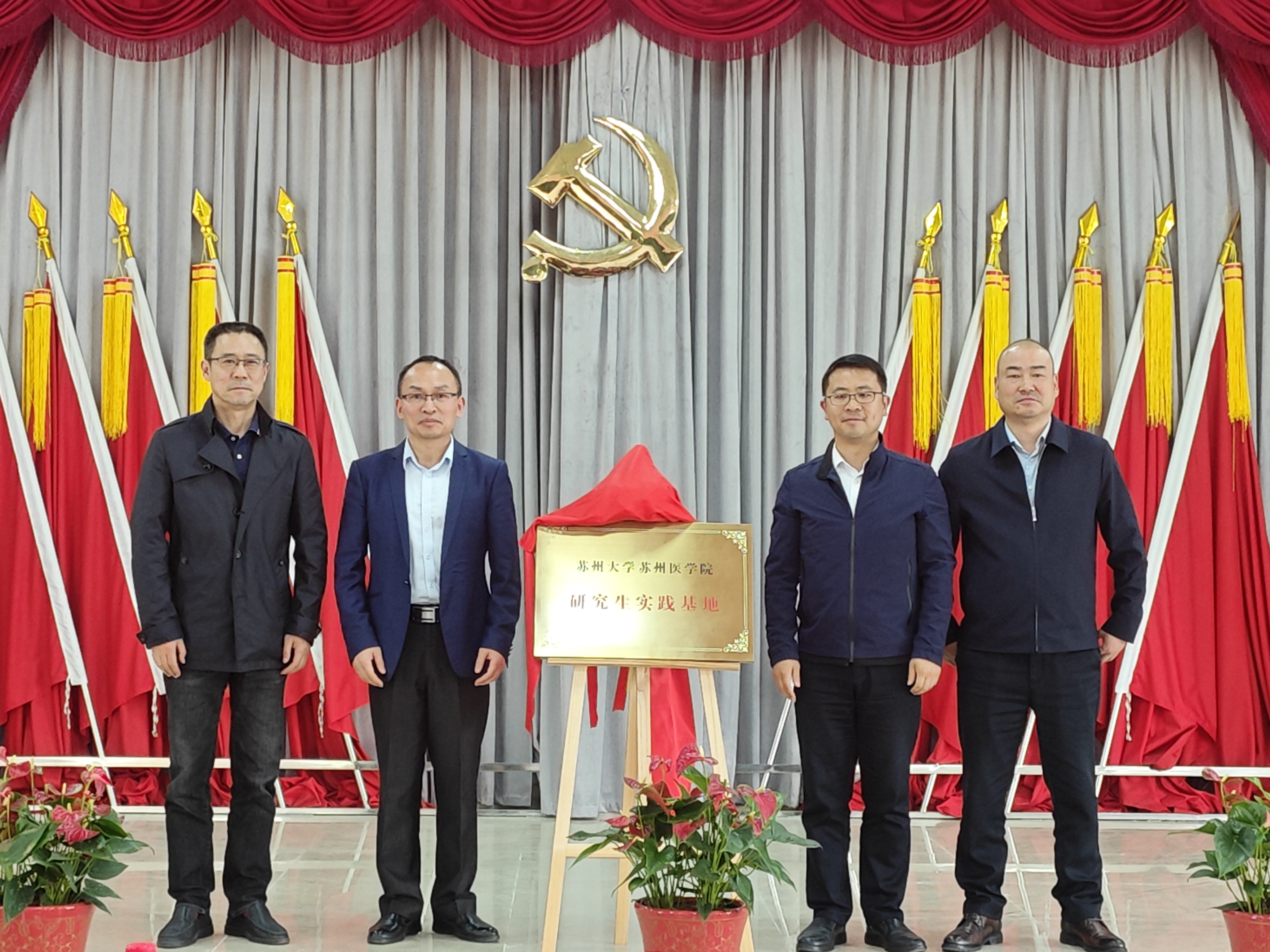 吴德建宣读了关于成立研究生助力乡村振兴功能型党支部的决定。他指出,苏州医学院自创立初即秉承了深厚的家国情怀。通过研究生实践基地的挂牌、建设,研究生能够为农村医疗卫生事业贡献微薄之力,提高学以致用的能力与水平,坚定为国为民的理想信念。他期望研究生们能在实践中不断磨砺自身,成长为德才兼备的杰出医学人才。