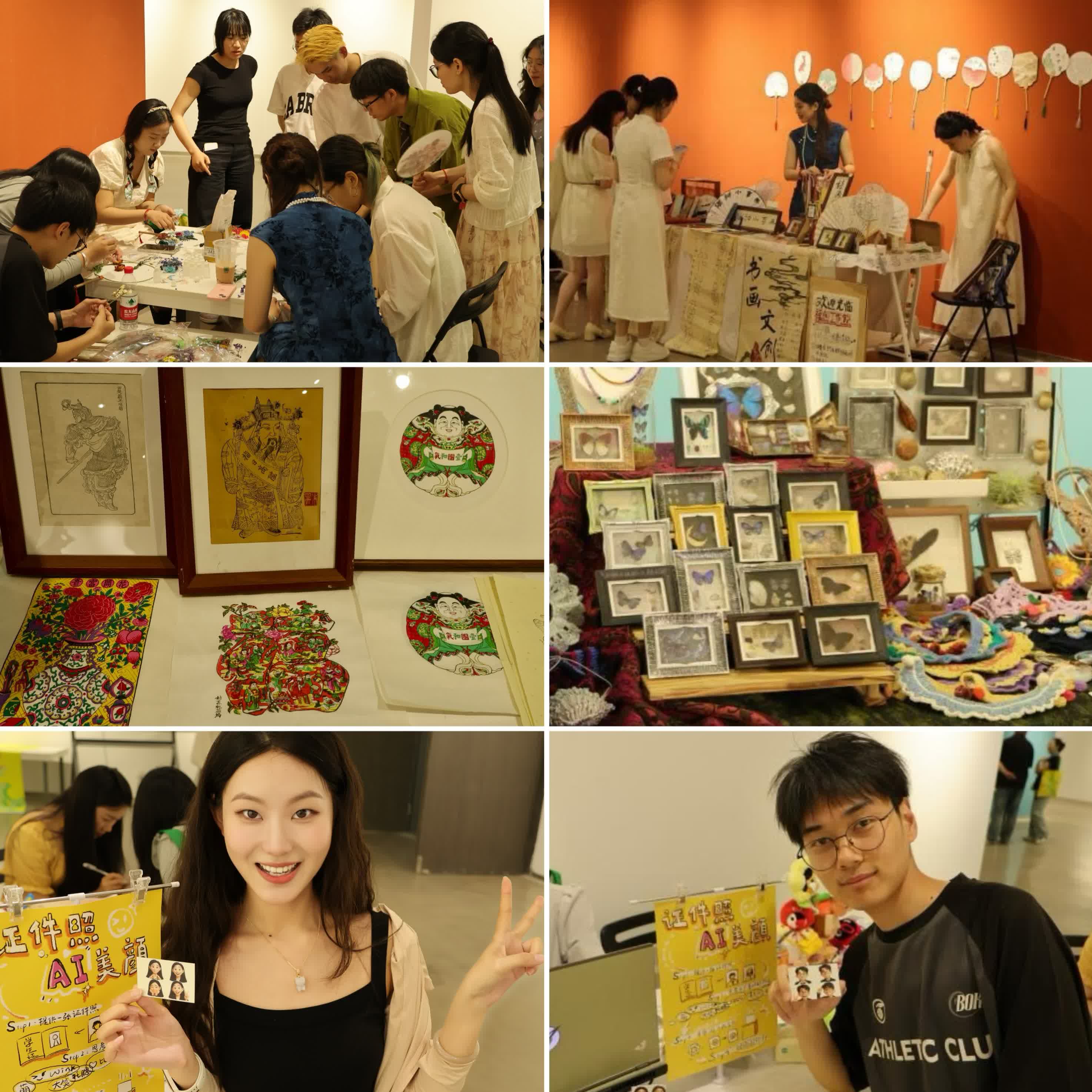 开幕式当天,美术馆内还设置了美育艺术街市集2.0,桃花坞木版年画、苏绣、书法等中华传统艺术体验活动,以及证件照AI美颜等人工智能艺术创作活动,让师生通过沉浸式互动体验中华传统文化之美,现场气氛热烈。