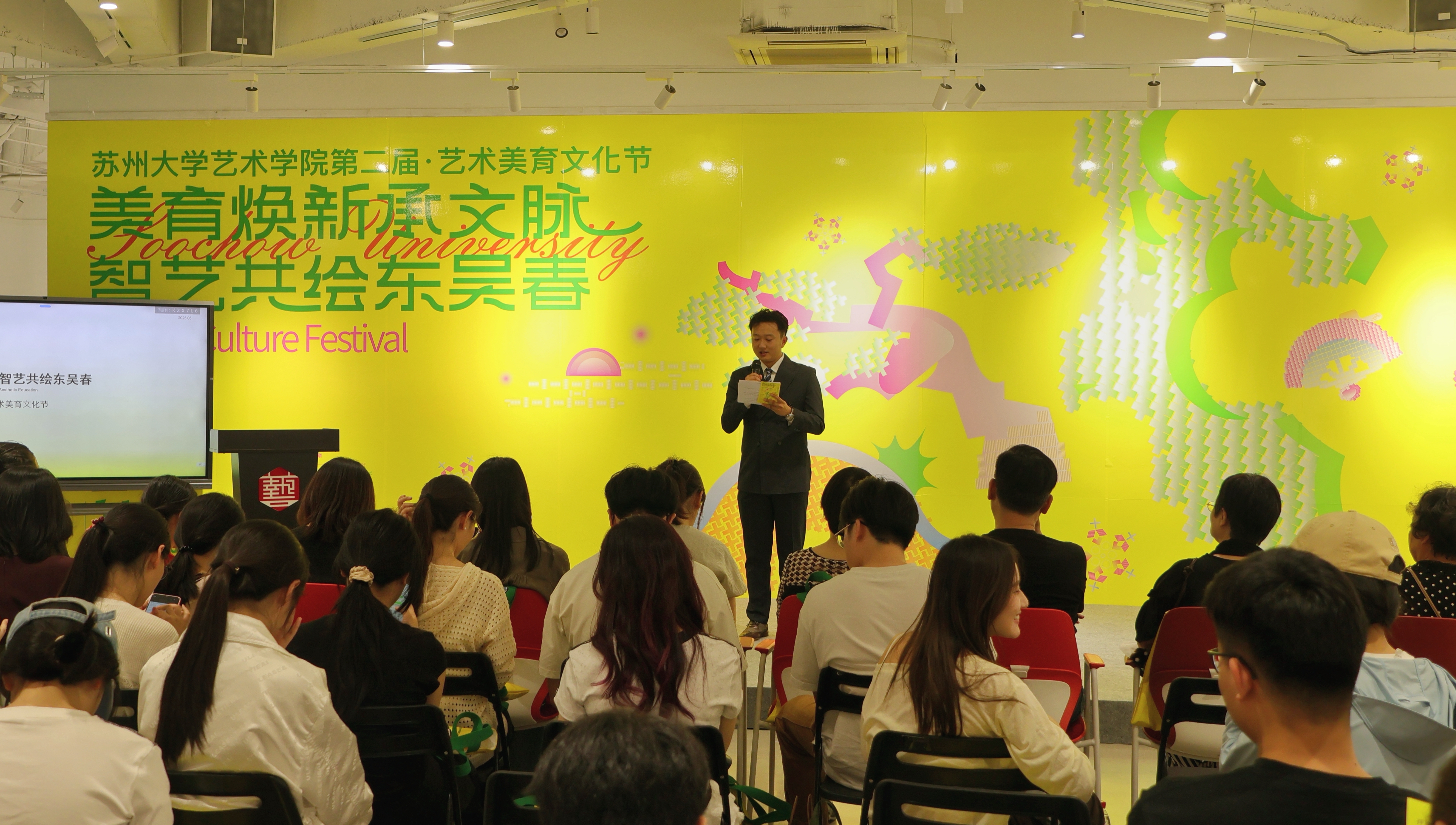 5月14日下午,“美育焕新承文脉,智艺共绘东吴春”苏州大学艺术学院第二届艺术美育文化节在我校美术馆开幕。艺术学院党委副书记、副院长虞岚出席开幕式,校研会以及各学院(部)师生代表100余人齐聚一堂,共襄文化美育交流盛宴。