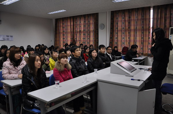 在观看完财大的视频介绍后,应用技术学院学生会副主席杨超播放了同学们精心制作的视频短片,短片中似一小桥流水人家般如画的校园环境引起了在场同学的一片赞赏声,丰富多彩的校园活动片段展览也令财大人大开眼界。学院社联主席陆雅斐、艺术团团长姚鲁骏、青年志愿者协会会长顾琳琳等简明扼要地介绍了我校学生组织的工作状况以及以及对未来的展望,他们在发言中表示要加强工作交流,取长补短,完善工作,更好地创造美好的大学生活。交流会在两院学生的热烈的讨论声中结束,在场同学纷纷表示在与对方的交流中吸取了经验教训,对今后的工作地组织开展也大有裨益。