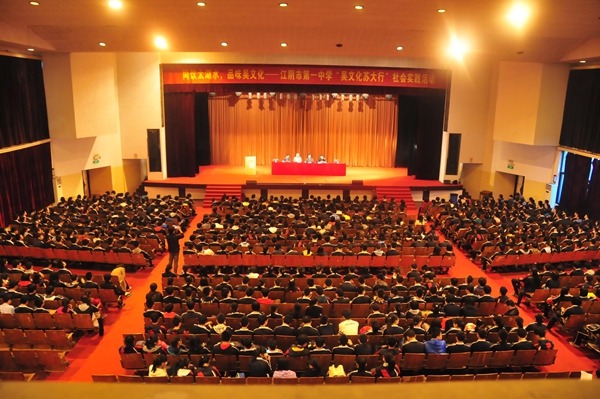 3月29日,江阴市第一中学“同饮太湖水,品味吴文化——吴文化苏大行”社会实践活动在我校存菊堂顺利开展。江阴市第一中学高一年级700多名师生参加了此次活动。实践活动特意邀请了我校吴文化研究中心副主任、博士生导师周可真教授作了有关吴文化的讲座。江阴市第一中学校长蒋志远、我校招生就业处副处长翟惠生参加了此次活动。活动由江阴市第一中学高一年级部顾建军部长主持。