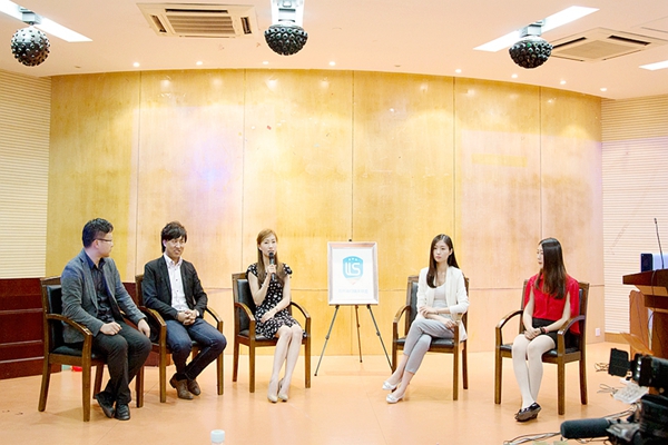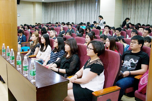 讲座分为留学经验分享与创业沙龙互动两大环节。在第一环节中,苏州海归·精英联盟发起人薛仁与学生分享了他在日本勤工俭学、艰苦奋斗的留学经历,精英联盟成员王维嘉则介绍了在英国的见闻以及工作创业经历。与学生分享的过程中,主讲人风趣的话语与深刻的寓意相结合,台下不时爆发出热烈的掌声。